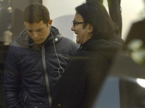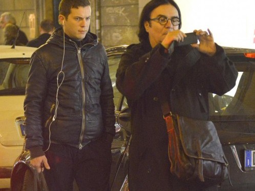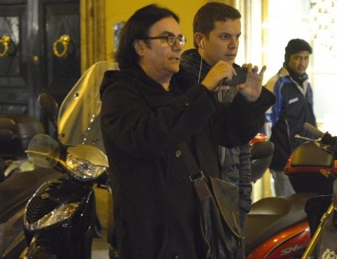Il cantautore è in compagnia. Accortosi dei “paparazzi”, Zero si improvvisa fotografo con il suo cellulare scattando foto a ripetizione (foto LaPresse):
