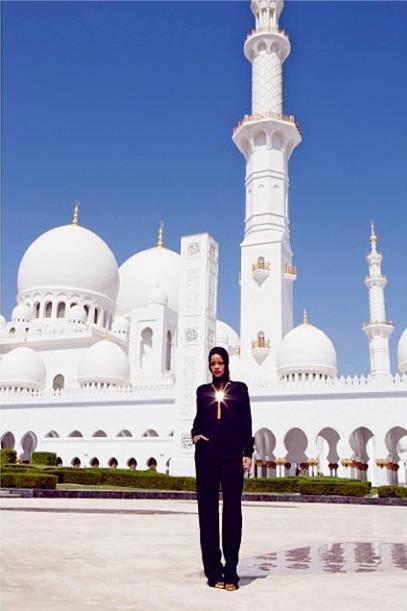 Rihanna, che ha tenuto un concerto ad Abu Dhabi sabato 19 ottobre, ha pubblicato su Instagram degli scatti con pose “suggestive” nel cortile della moschea prima di entrare nel luogo di culto.