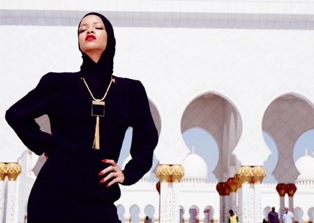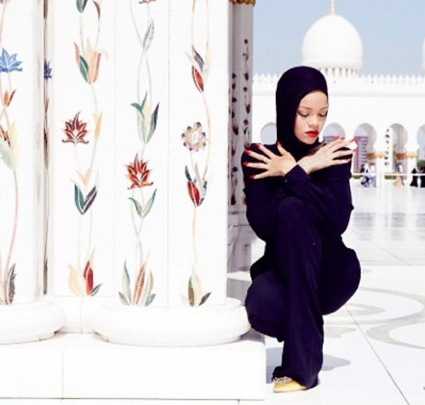 Rihanna ha dovuto lasciare la Moschea di Abu Dahabi perche' sprovvista dell'autorizzazione per un servizio fotografico.