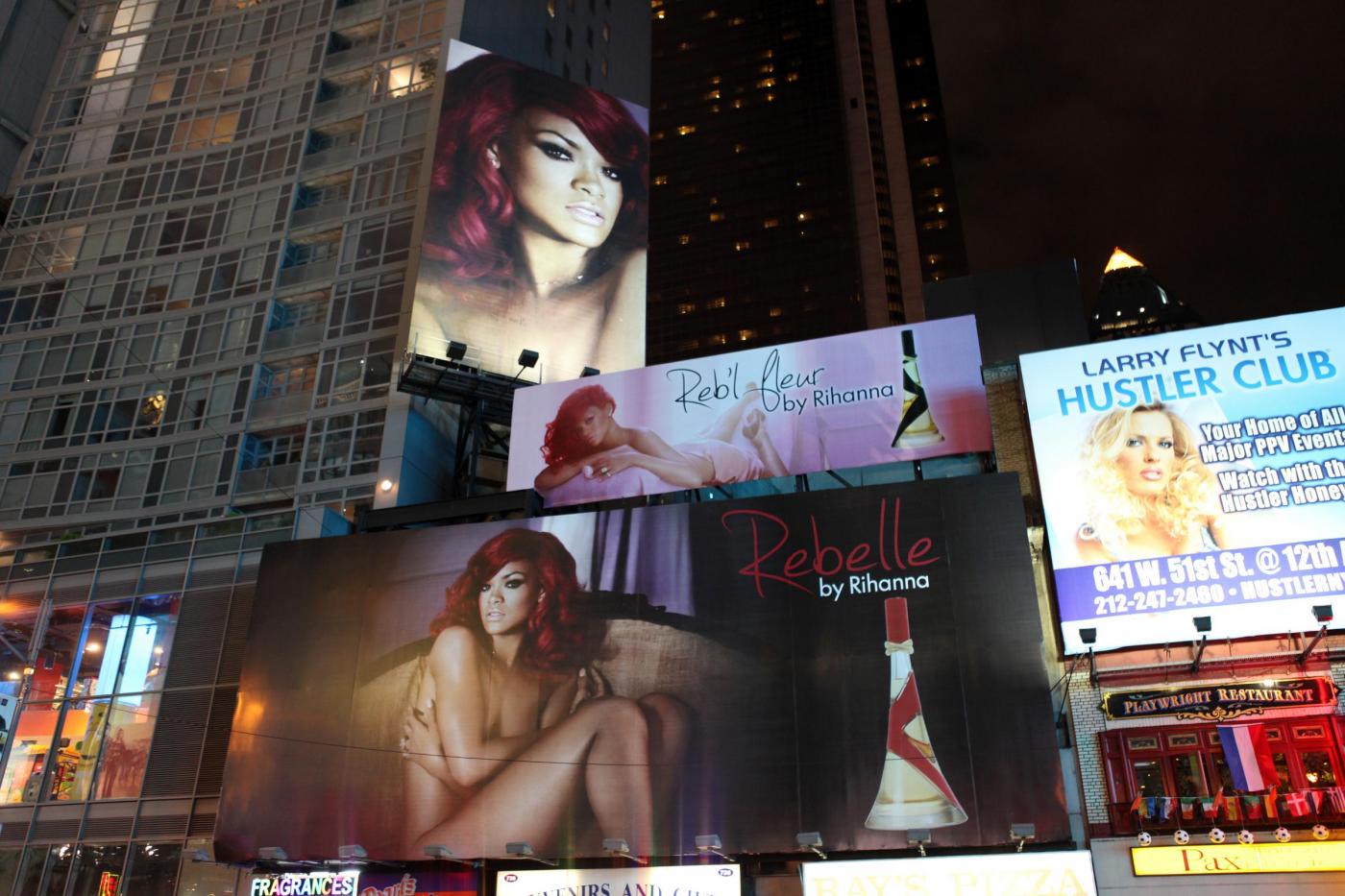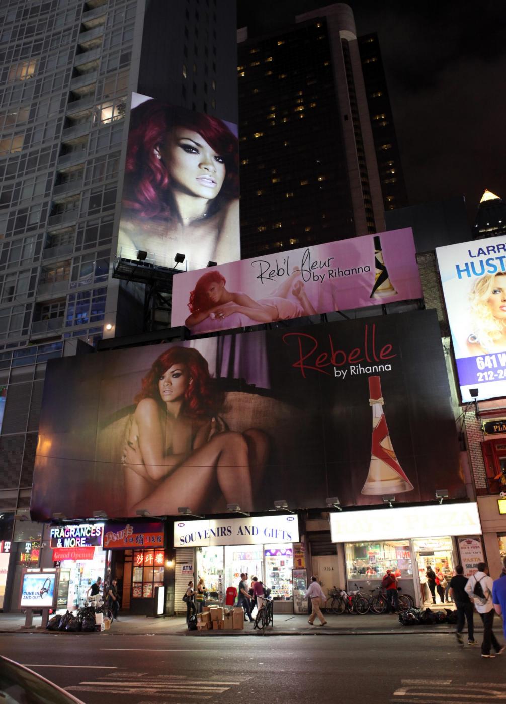 NEW YORK – Rihanna ha un fisico invidiabile e può permettersi qualsiasi abito. Ed è forse per questo che, avendo l’imbarazzo della scelta, ha deciso di eliminare il problema posando nuda sui cartelloni che troneggiano in quel di New York per pubblicizzare la sua ultima “fatica”, ovvero il suo nuovissimo profumo “Rebelle”.