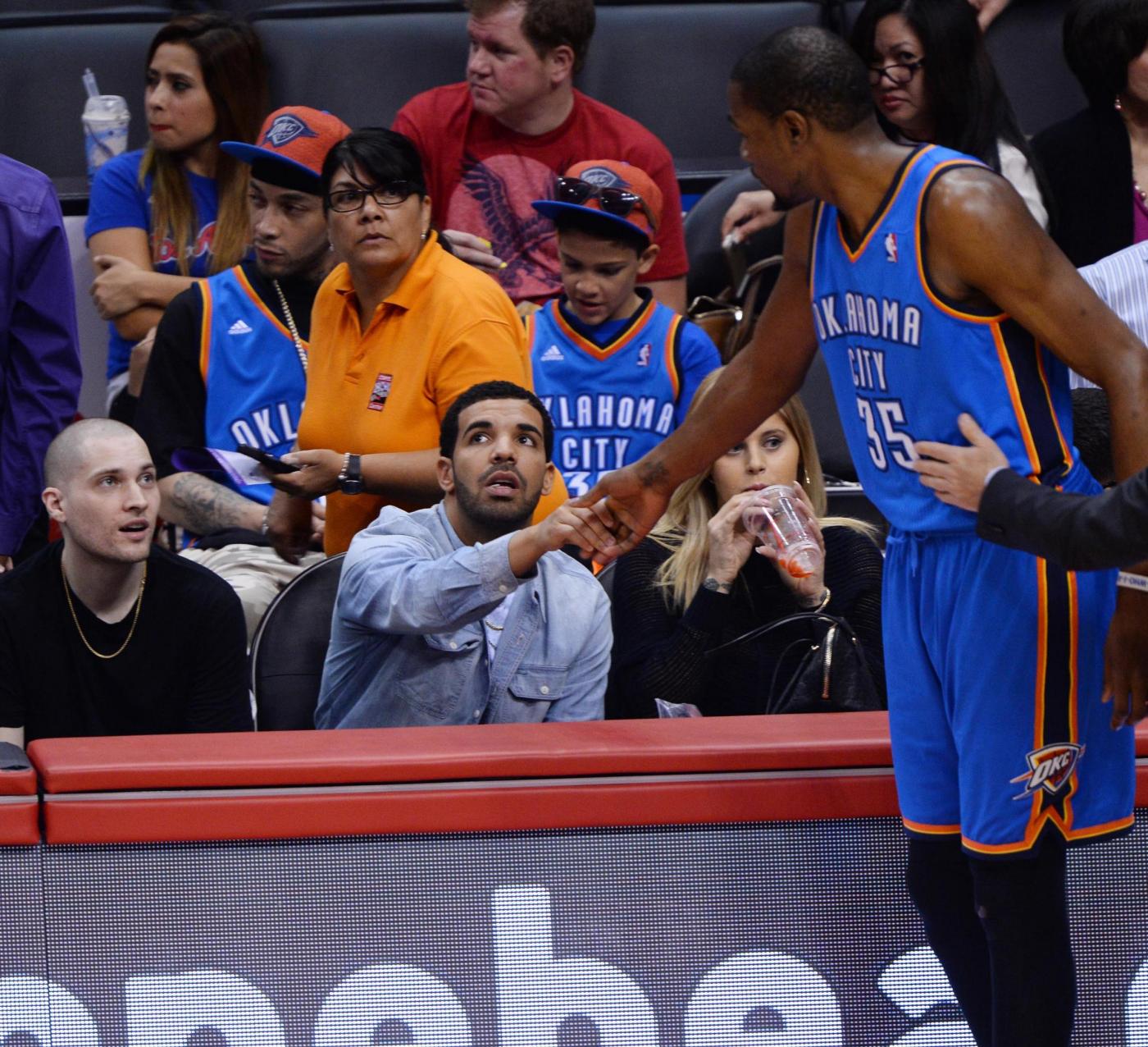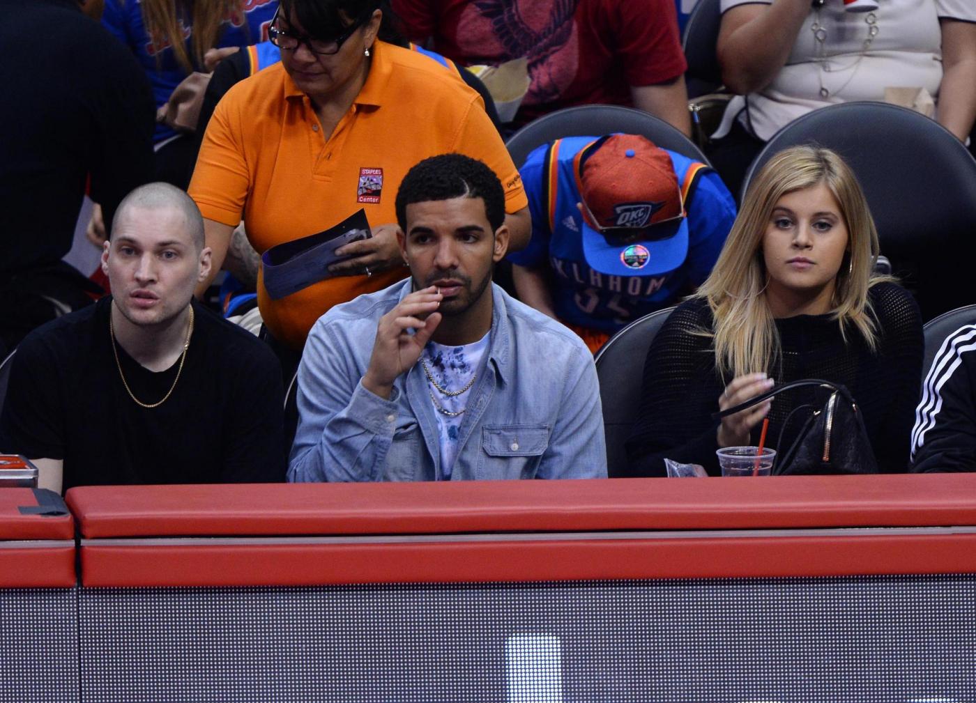 2014 GAMEPIKS 310-828-3445Both Rihanna and Drake attend the Los Angeles Clippers vs. the Oklahoma City Thunder game at the Staples Center in Los Angeles, California on April 9. 2014.GAMEPIKS LaPresseOnly Italy