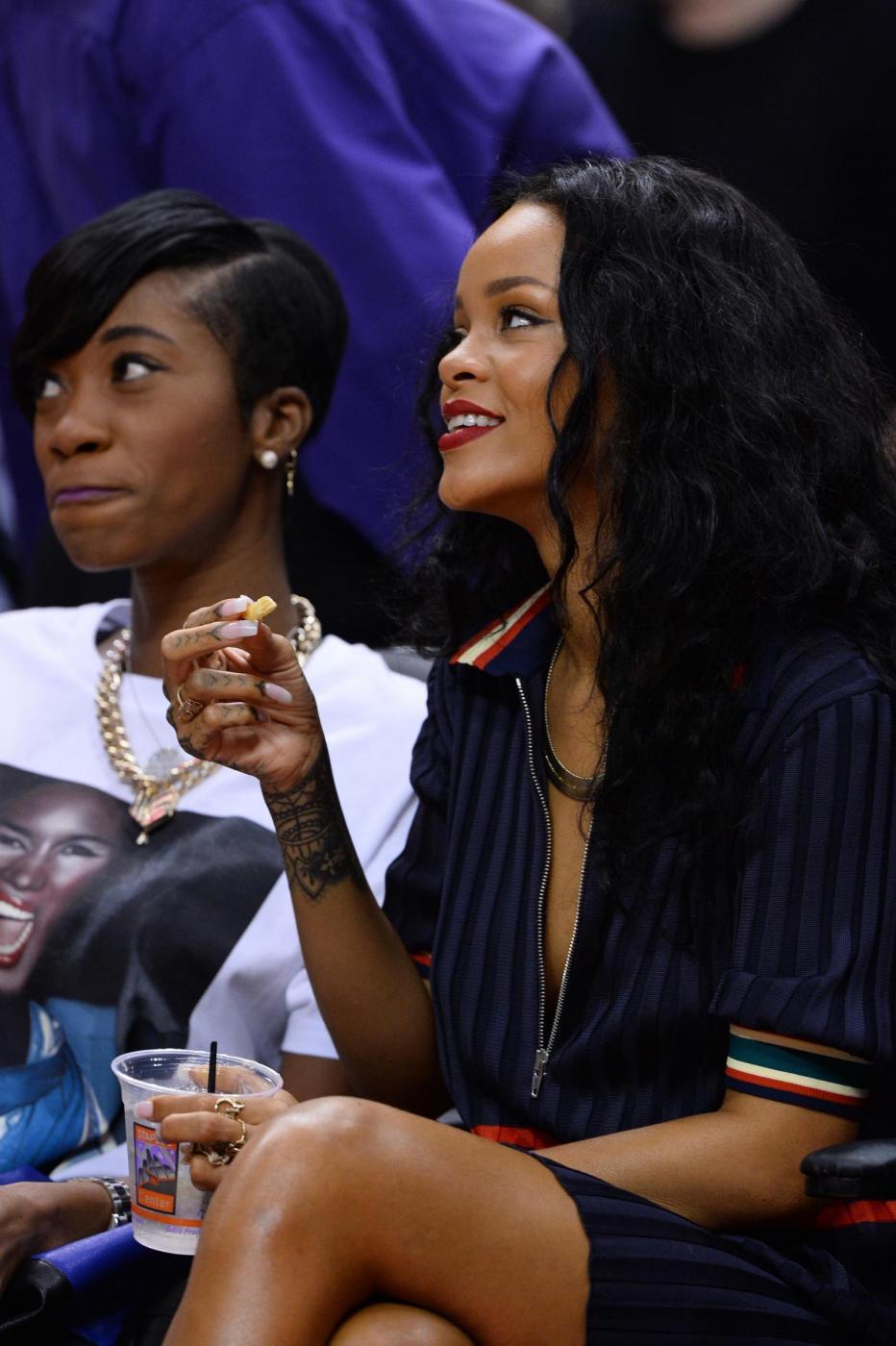 LOS ANGELES – Rihanna con un’amica alla partita valida per l’Nba tra i Los Angeles Clippers e i Thunder Oklahoma City.