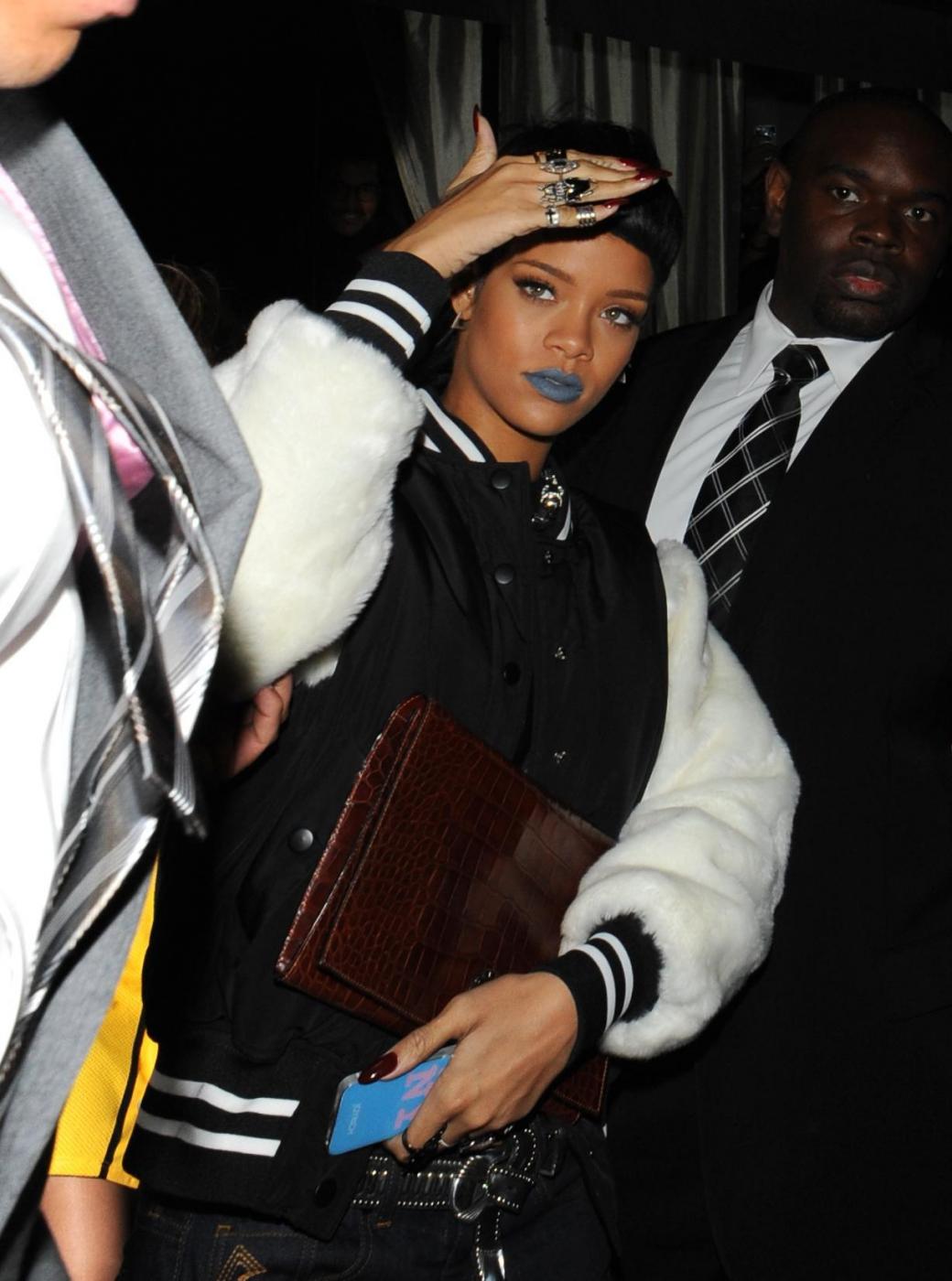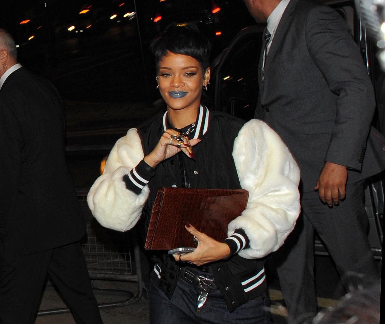 LONDRA – Rihanna ha presentato a Londra la sua nuova collezione ispirata allo “urban street wear” per River Island. La cantante di Barbados, alla presentazione ha indossato un look particolare con teddy da collegiale anni 50 e rossetto blu. Decine di fan hanno atteso la star davanti al negozio in Oxford Street in cui è avvenuta la presentazione.