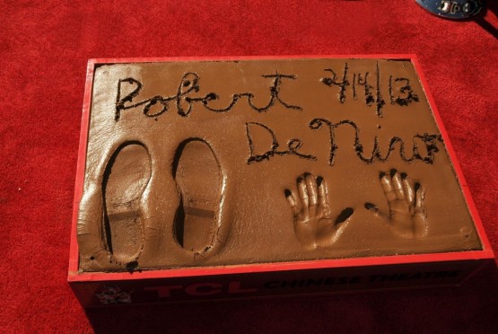 LOS ANGELES – Robert De Niro ha affondato mani e piedi nel cemento per lasciare le sue impronte davanti al Tcl Chinese Theatre di Hollywood, raggiungendo così altre leggende del cinema. “Joe Pesci diceva sempre che sarei finito con i piedi nel cemento. Non credo questo fosse ciò che intendeva”, ha detto alla folla De Niro, che quest’anno ha avuto una nomination come attore non protagonista per ‘Silver Linings Playbook’.