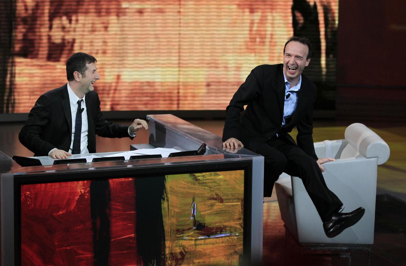 ”Berlusconi mi manca, ma ogni risposta a questa domanda è un tranello. Se dici ‘No, non mi manca’ sembra brutto verso lui. Se dici ‘Sì, mi manca’ sembra brutto verso di noi” ha scherzato il comico toscano. A seguire le immagini di Benigni a Che tempo che fa