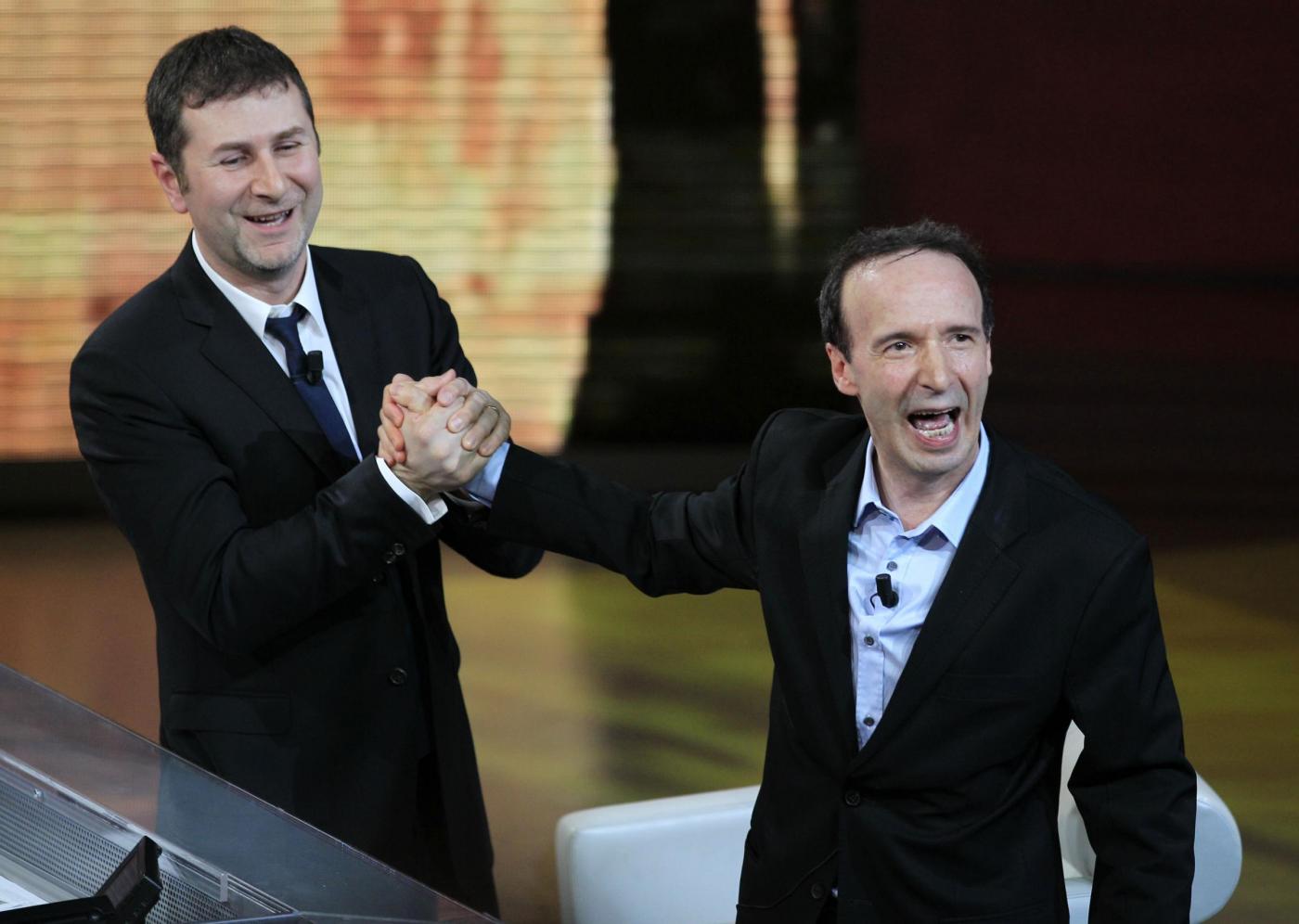 MILANO – ”Camicie verdi, lauree in bianco e conti in rosso: ecco la bandiera tricolore della Lega”: lo ha detto Roberto Benigni nel suo show a “Che tempo che fa” di Fabio Fazio in onda domenica 15 aprile, che ha ribadito il suo ”Viva l’unità d’Italia” e il suo omaggio al Risorgimento e ai patrioti.