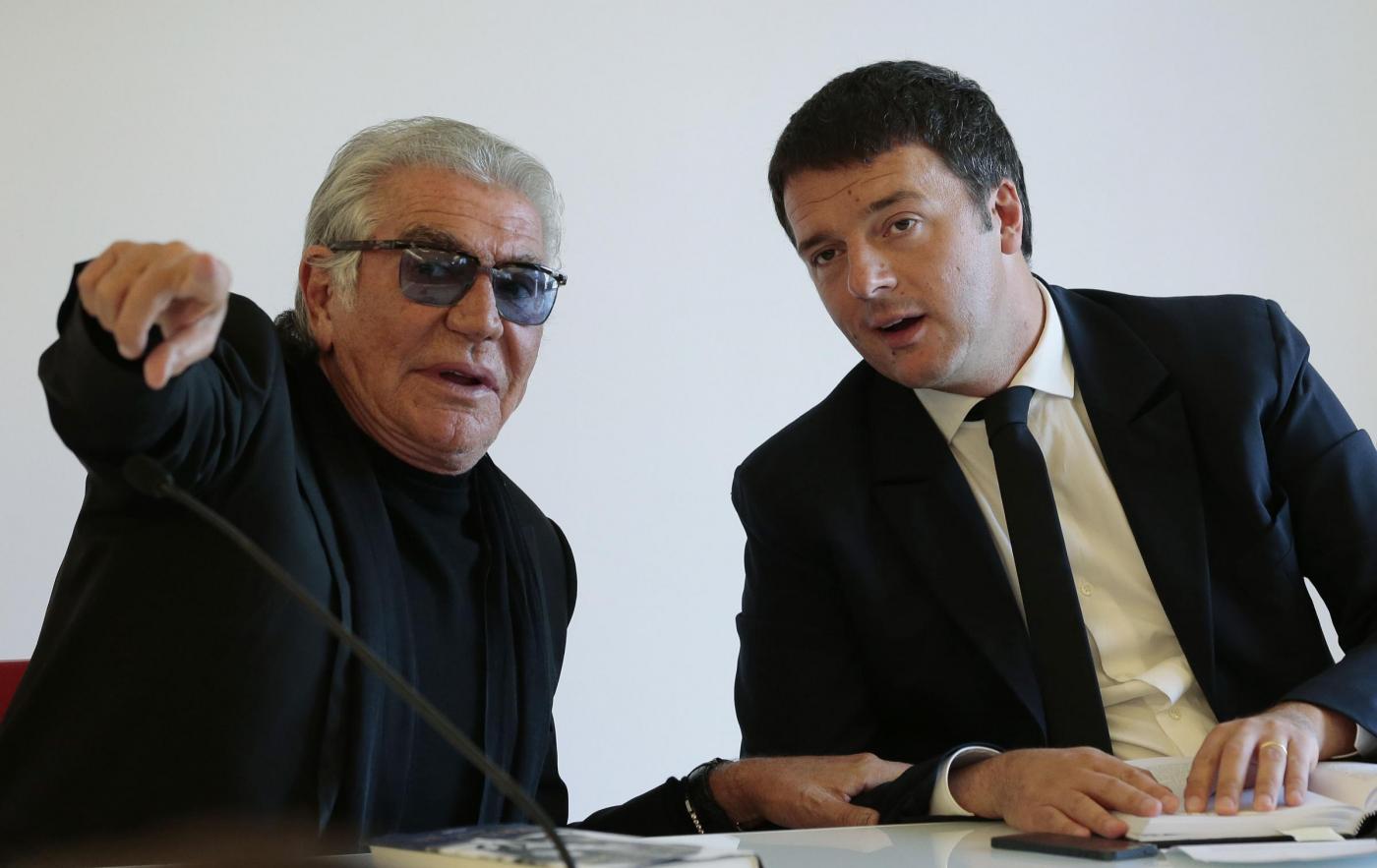 MILANO – Per la presentazione della sua autobiografia alla libreria Mondadori di Milano, lo stilista Roberto Cavalli arriva con un ospite d’eccezione: il sindaco di Firenze Matteo Renzi reduce del bagno di folla della festa Pd di Sesto San Giovanni.