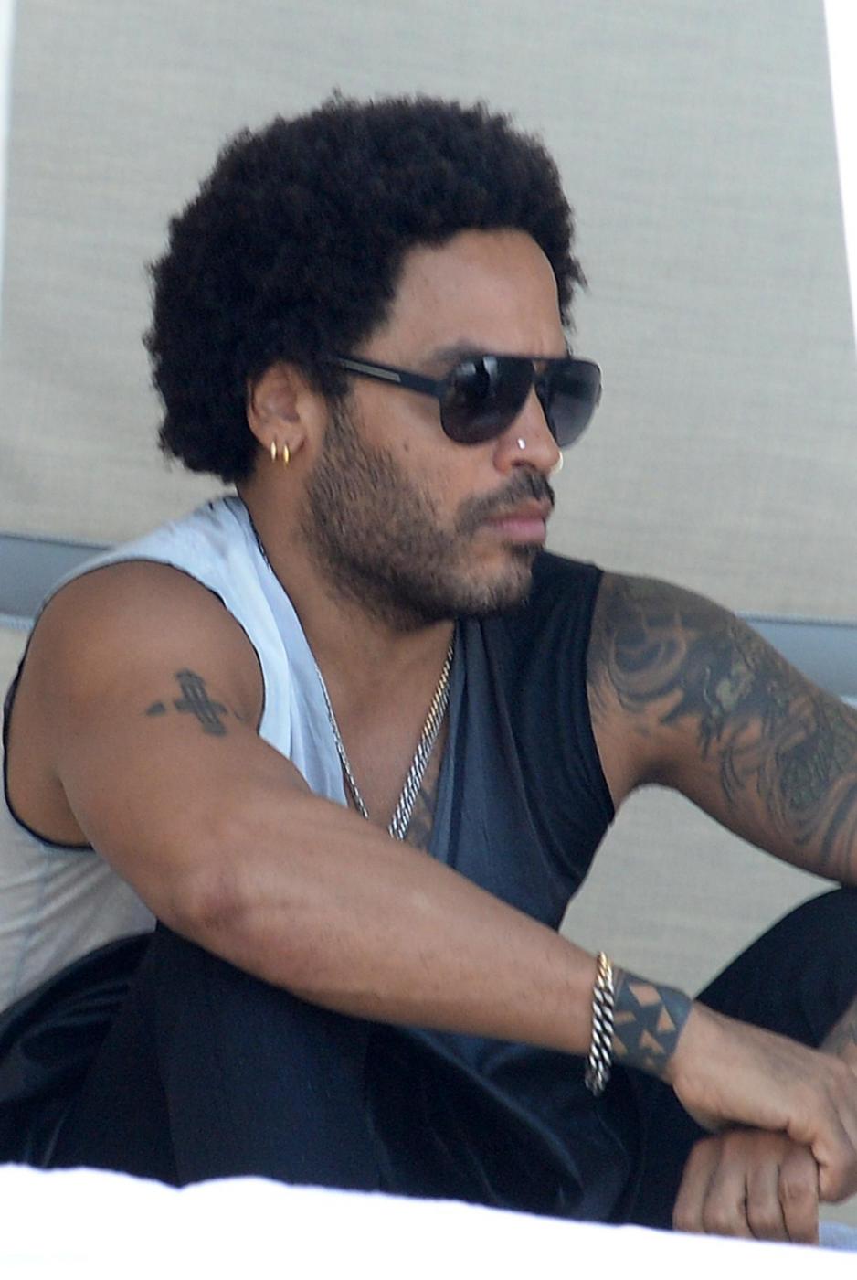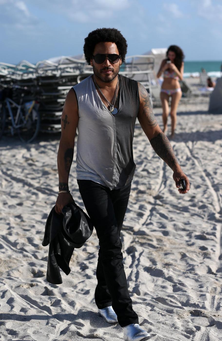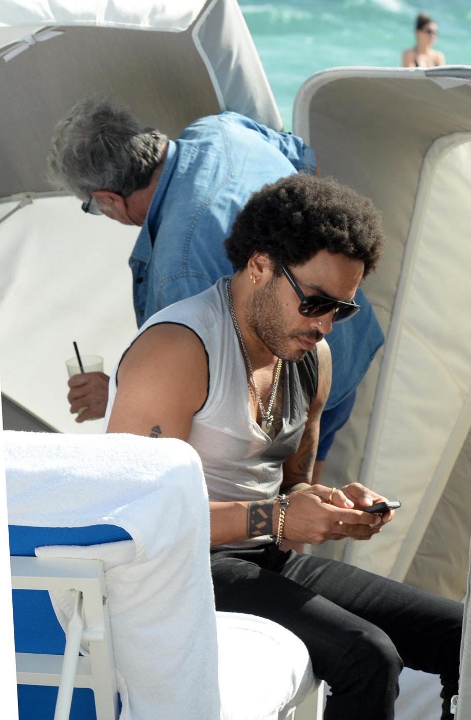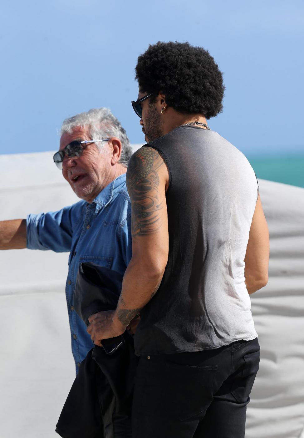 December 8, 2013: Musician and actor Lenny Kravitz has drinks and a meeting with fashion designer Roberto Cavalli on the beach in Miami during Art Basel.Mandatory Credit: INFphoto.com Ref: infusmi-11/13|sp| LaPresseOnly Italy