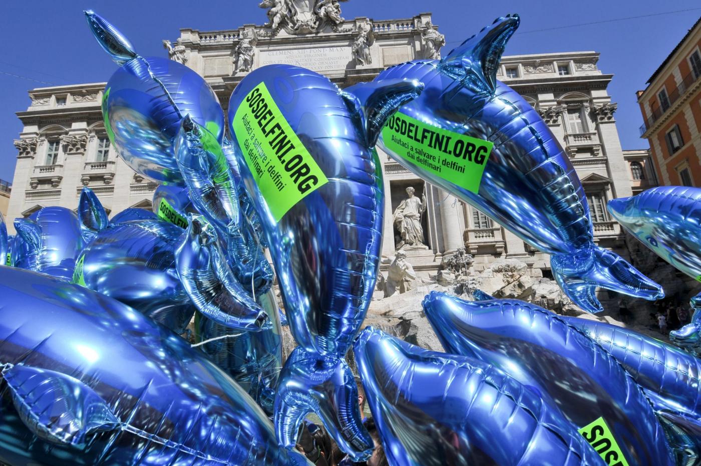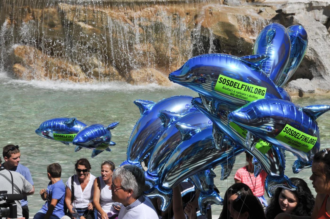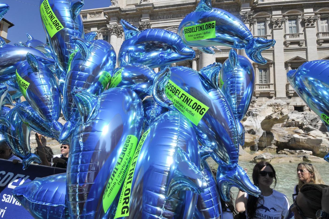 ROMA – Flash mob a Roma per chiedere la chiusura dei delfinari italiani. Ad organizzarlo sono la Lav e Marevivo: il flash mob con 100 palloncini di delfino, si ispira alla celebre “truffa” della vendita della Fontana di Trevi, non per denaro ma esclusivamente per solidarietà verso i tanti delfini rinchiusi in vasche a volte non più grandi della celebre Fontana venduta da Totò.