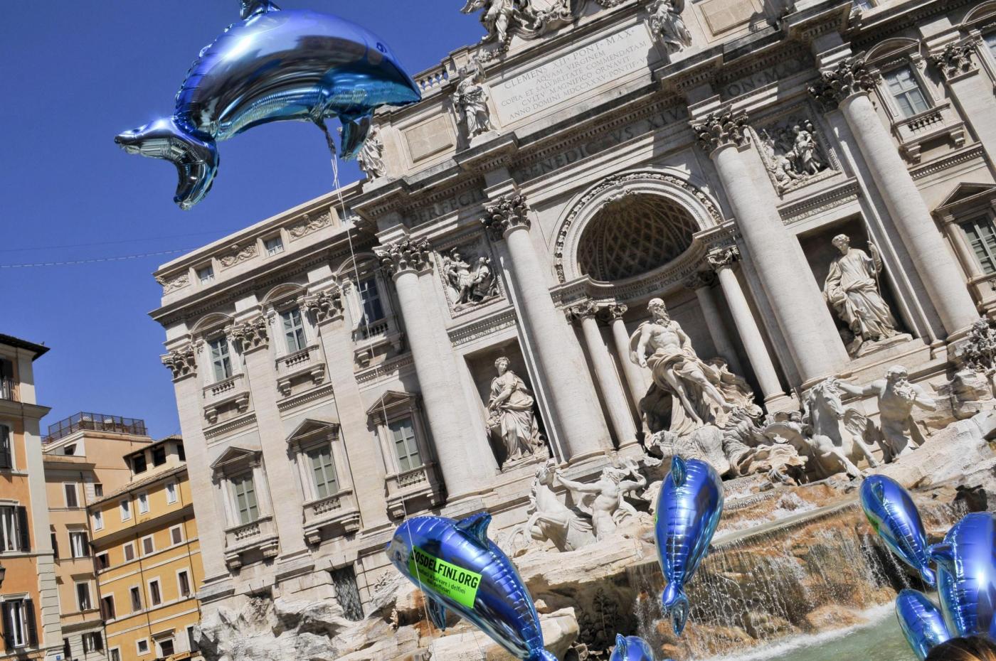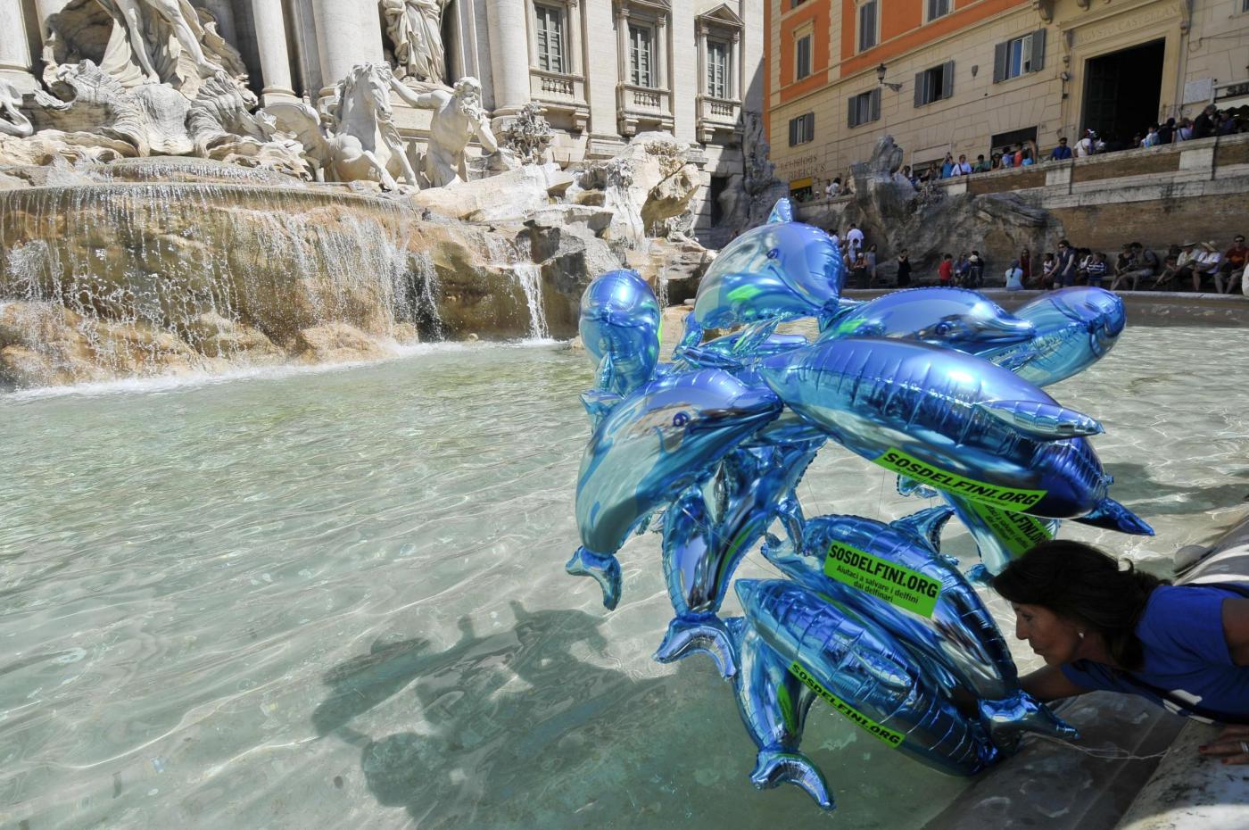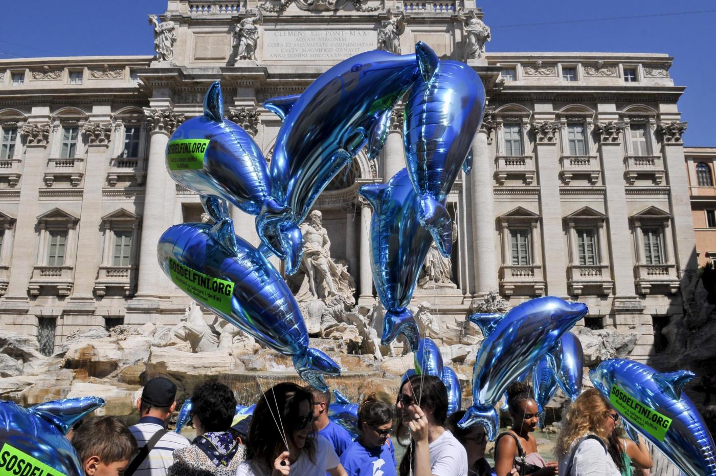 ROMA – Flash mob a Roma per chiedere la chiusura dei delfinari italiani. Ad organizzarlo sono la Lav e Marevivo: il flash mob con 100 palloncini di delfino, si ispira alla celebre “truffa” della vendita della Fontana di Trevi, non per denaro ma esclusivamente per solidarietà verso i tanti delfini rinchiusi in vasche a volte non più grandi della celebre Fontana venduta da Totò.
