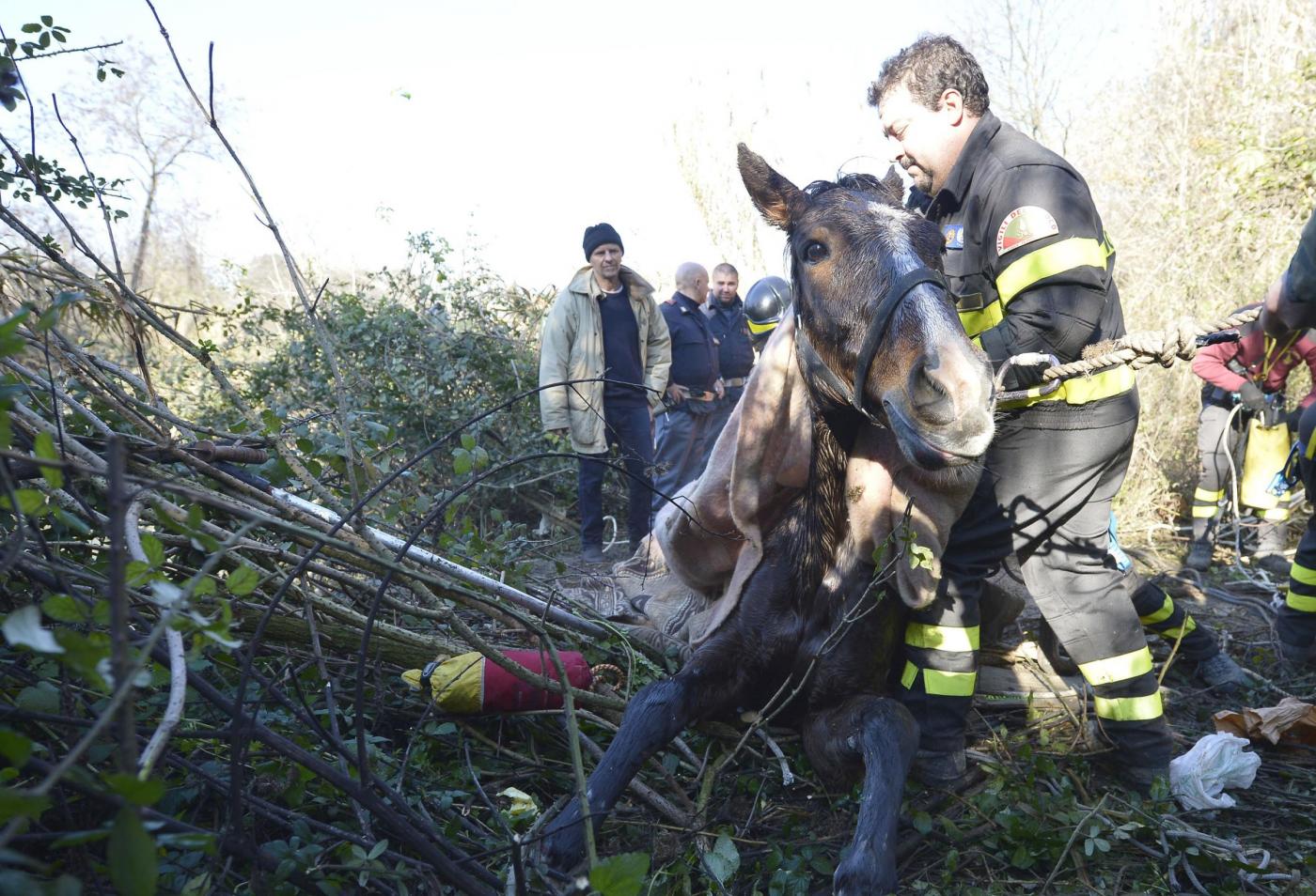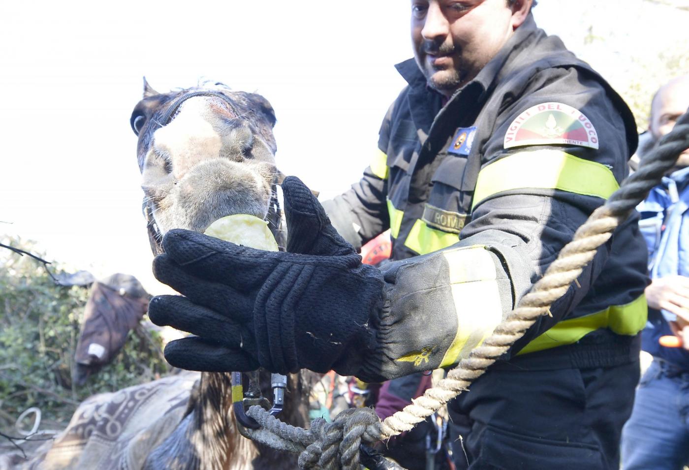 I pompieri hanno salvato l’animale all’altezza di Montesacro (foto LaPresse):