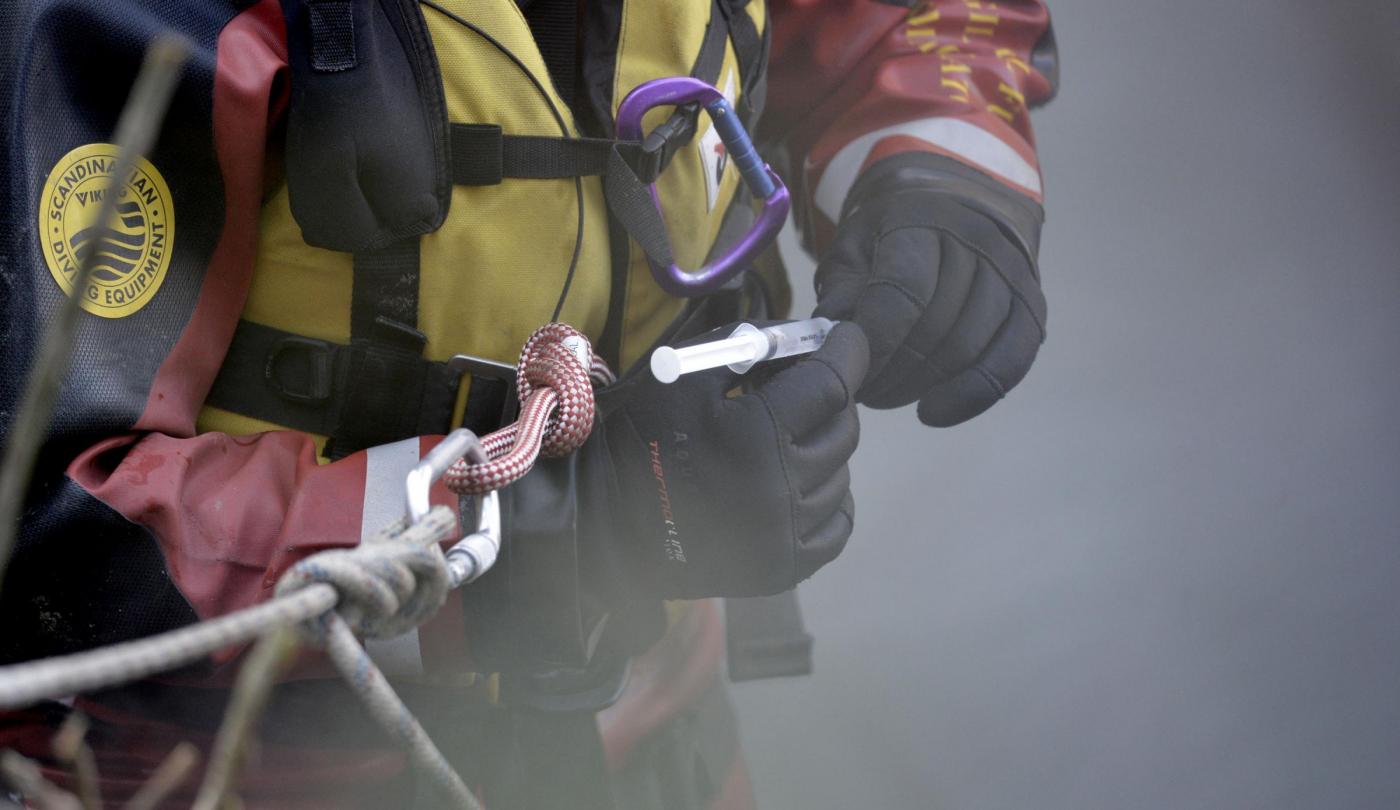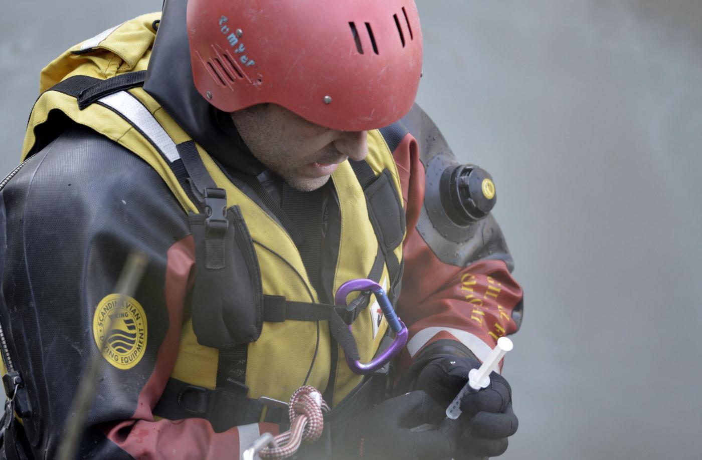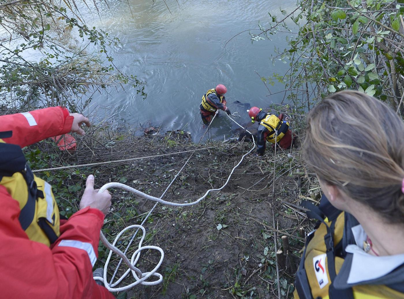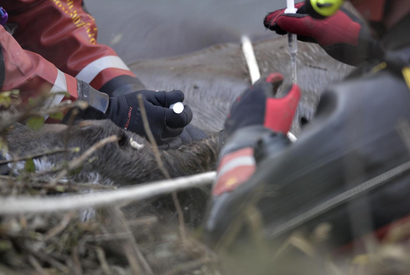 foto:Alfredo Falcone/LaPresse Roma, 3-01-2013 Fiume Aniene altezza montesacro un cavallo di un maneggio finisce nel fiume, i vigili del fuoco riescono a salvarlo nella foto:un momento del salvataggio
