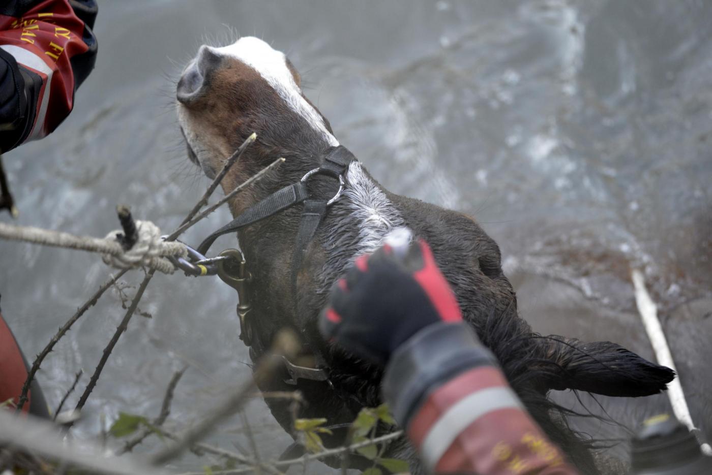 ROMA – I Vigili del Fuoco di roma sono riusciti a salvare un cavallo che era finito nel fiume Aniene, un affluente del Tevere che bagna alcuni quartieri del nord-est di Roma.