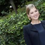Actress Rosamund Pike arrives for the photo call of her movie "Gone Girl", in Rome, Friday, Sept. 12, 2014. (AP Photo/Alessandra Tarantino)