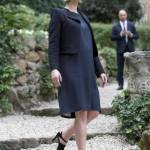Capelli biondi a caschetto, occhi azzurri e sorriso enigmatico, l’attrice britannica ha sfoggiato un look total black. Dal vestito si è intravista la pancia rotondetta: la bond girl aspetta il secondo figlio dal compagno Robie Uniacke.