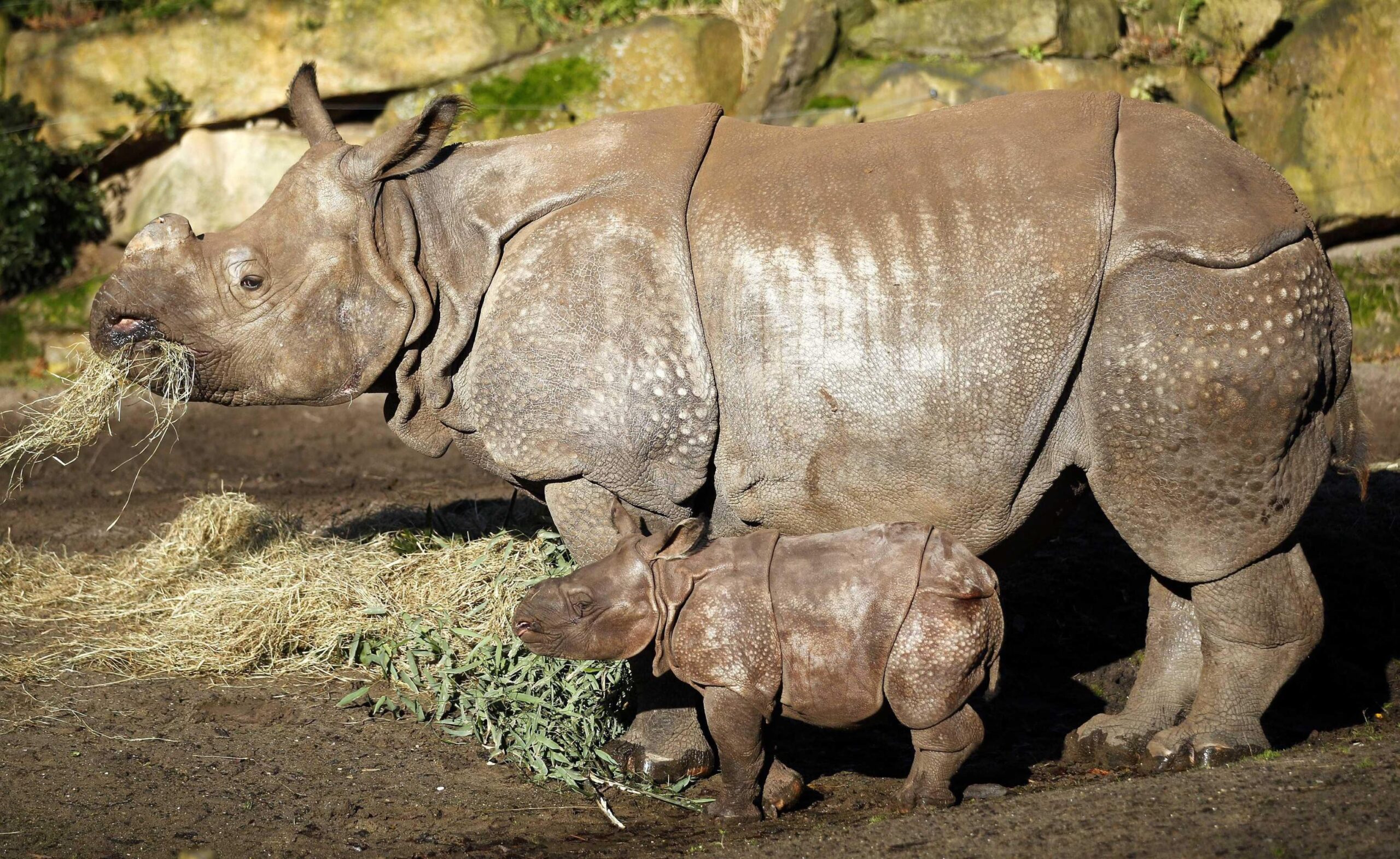 Rotterdam: il piccolo rinoceronte a spasso con la mamma per lo zoo