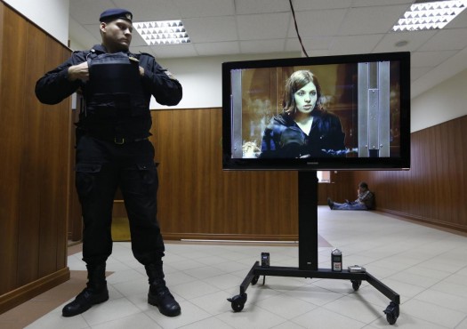 Foto LaPresse10/10/2012 MoscaEsteroPrima udienza del processo di appello contro le Pussy Riotnella foto: un poliziotto osserva una delle Pussy Riot