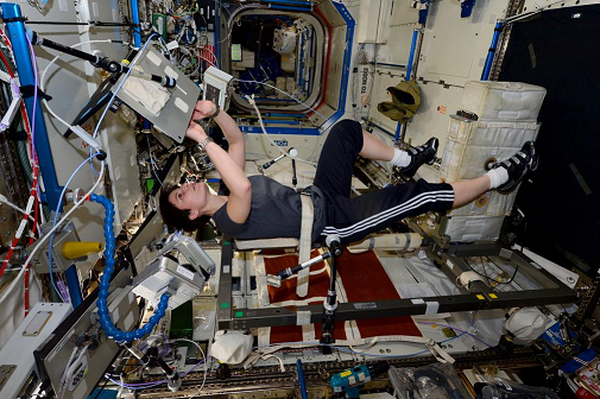 Oltre a curare l’alimentazione, perché il giusto apporto di nutrienti ed energia è indispensabile in condizioni di microgravità, gli astronauti devono fare anche molta attività ginnica per contrastare il declino fisico che si verifica durante lunghi periodi nello spazio, oggi la Cristoforetti ha inviato la foto della prima pedalata sulla cyclette.