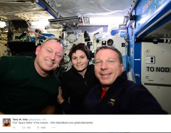 +++ ATTENZIONE LA FOTO NON PUO' ESSERE PUBBLICATA O RIPRODOTTA SENZA L'AUTORIZZAZIONE DELLA FONTE DI ORIGINE CUI SI RINVIA +++ Un selfie pubblicato sul profilo Twitter di Samantha Cristoforetti, 25 novembre 2014.