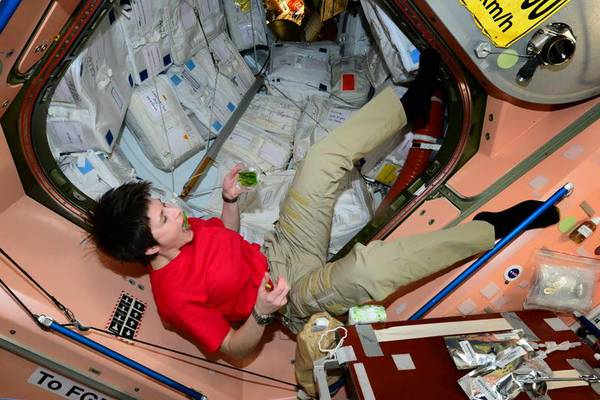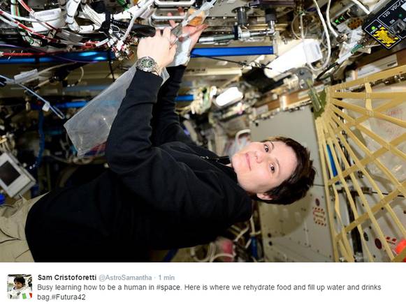 Samantha Cristoforetti mangia degli asparagi reidratatiSamantha Cristoforetti, il diario fotografico dallo spazio9