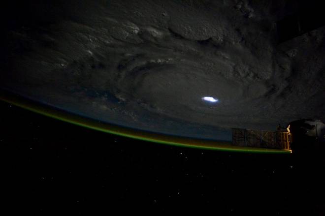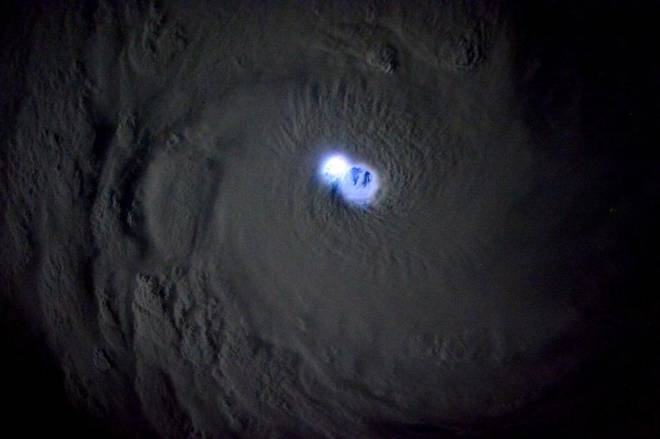 Samantha viaggia ad una quota di 400 km dalla terra e sfreccia in orbita a 28.800 chilometri all’ora. L’astronauta italiana, proprio mentre è in viaggio inquadra dalla cupola della stazione spaziale il ciclone i cui venti raggiungono una velocità di 250 chilometri l’ora e fotografa l’interno dell’occhio da cui scocca un fulmine che viaggia ad almeno 50mila chilometri al secondo. Oltre a questo, ci sono immagini di altri fulmini che arrivano a 100mila chilometri al secondo, ossia un terzo della velocità della luce.