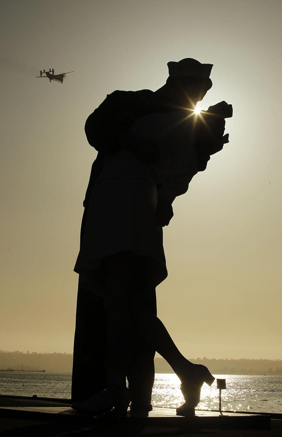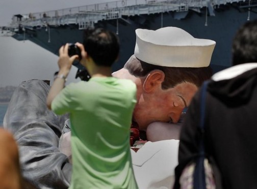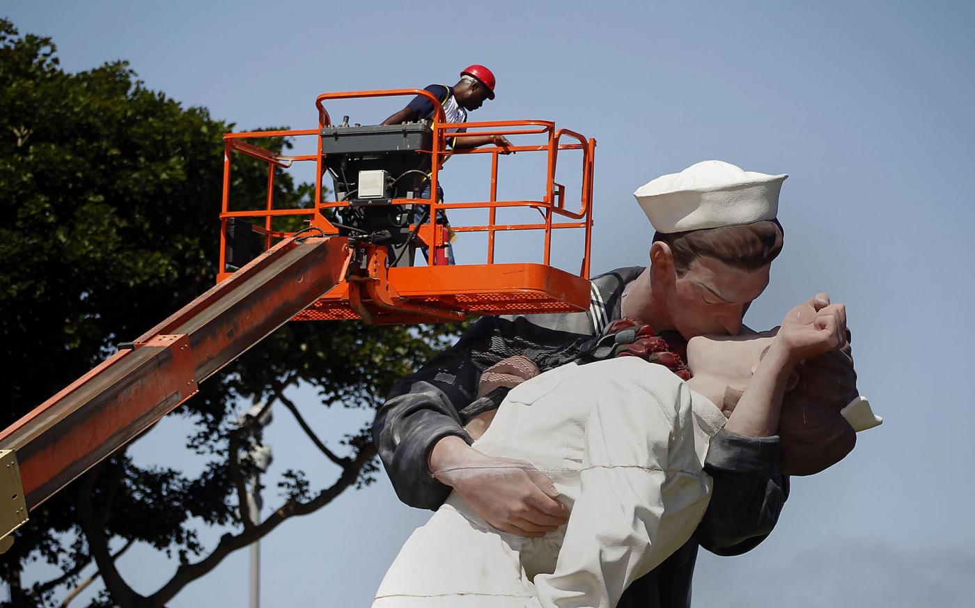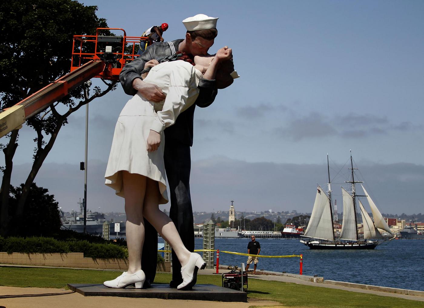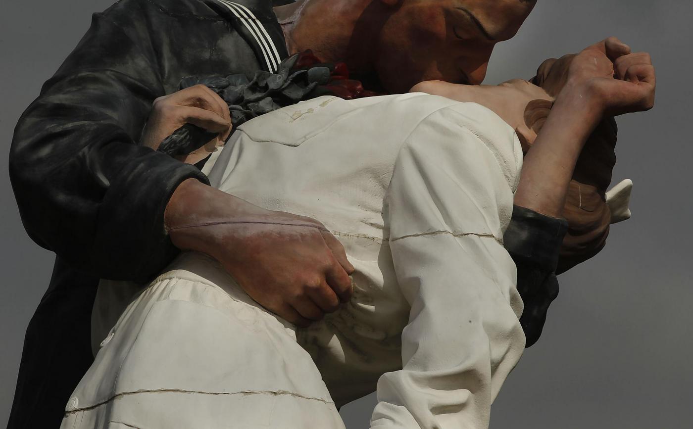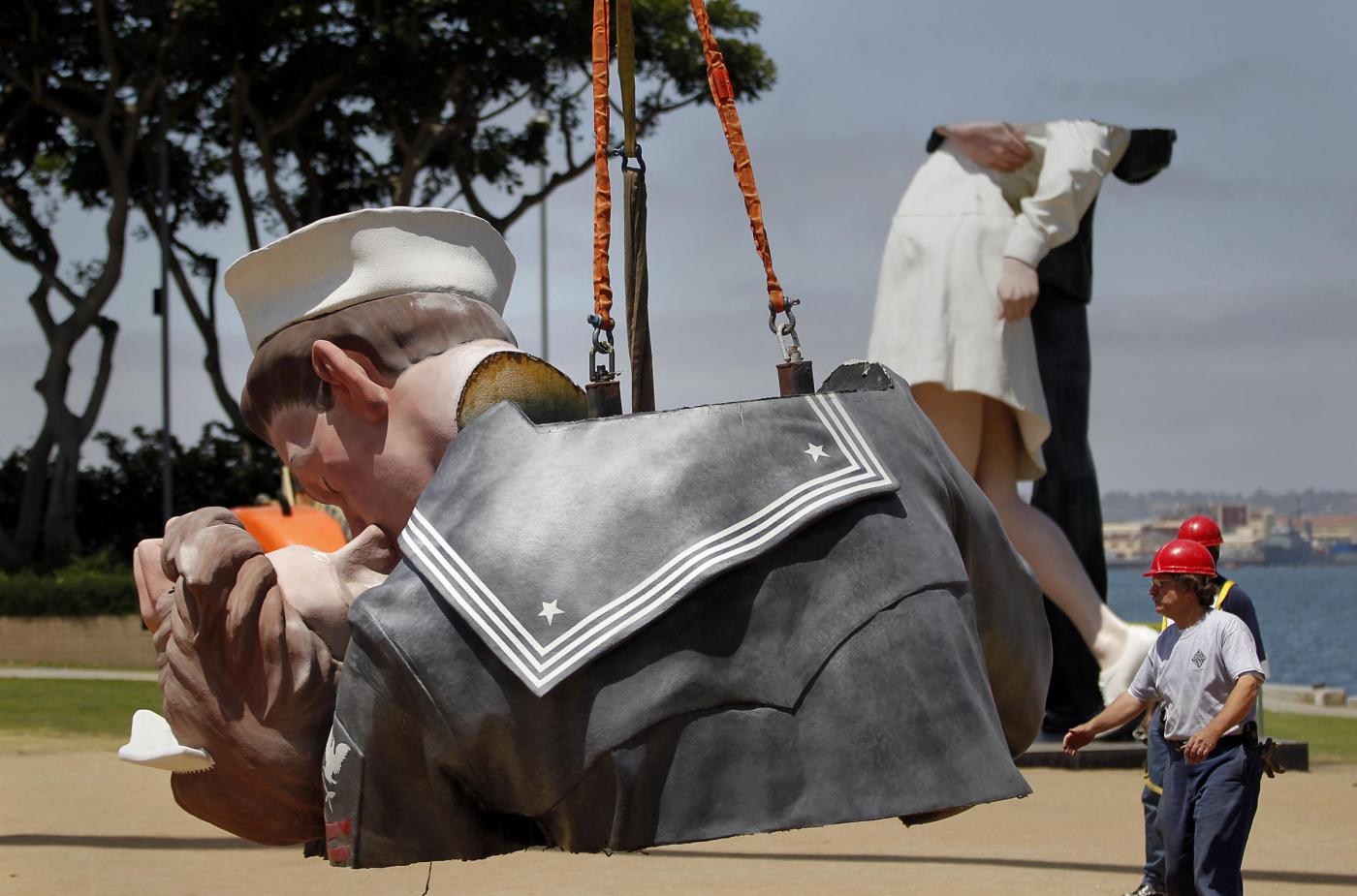 Si tratta di ”Unconditional Surrender”, l’enorme statua che racconta la fine della guerra con un famoso bacio tra l’infermiera e il marinaio, ispirata all’immagine scattata a Times Square da Alfred Eisenstaedt.