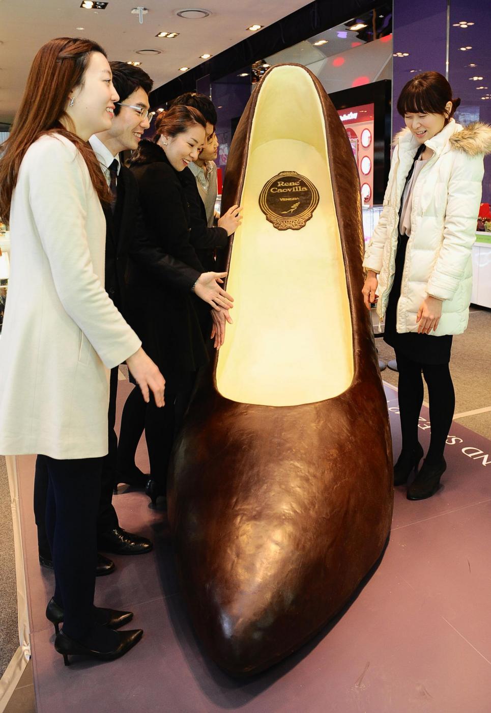 SEUL (COREA DEL SUD) – Lo Hyundai Department Store di Seul ha mostrato l’enorme scarpa di cioccolato che il 14 febbraio, giorno di San Valentino, sarà esposta all’interno del centro commerciale.