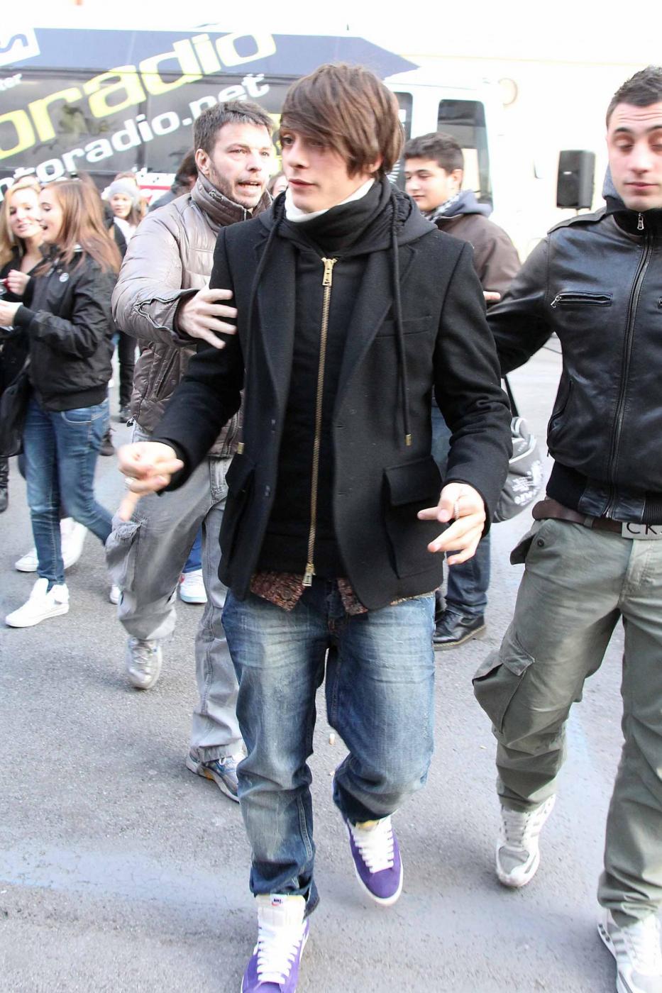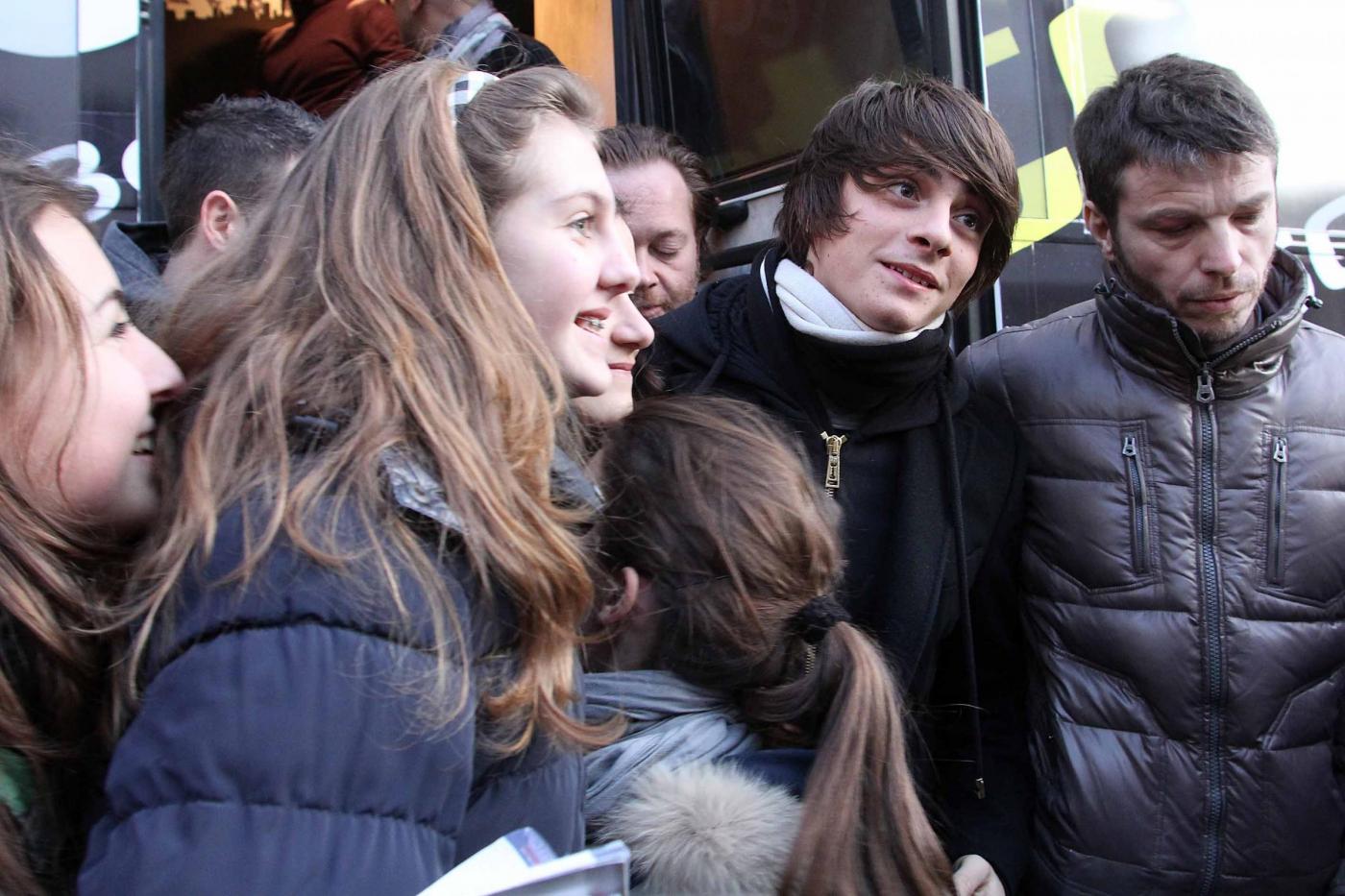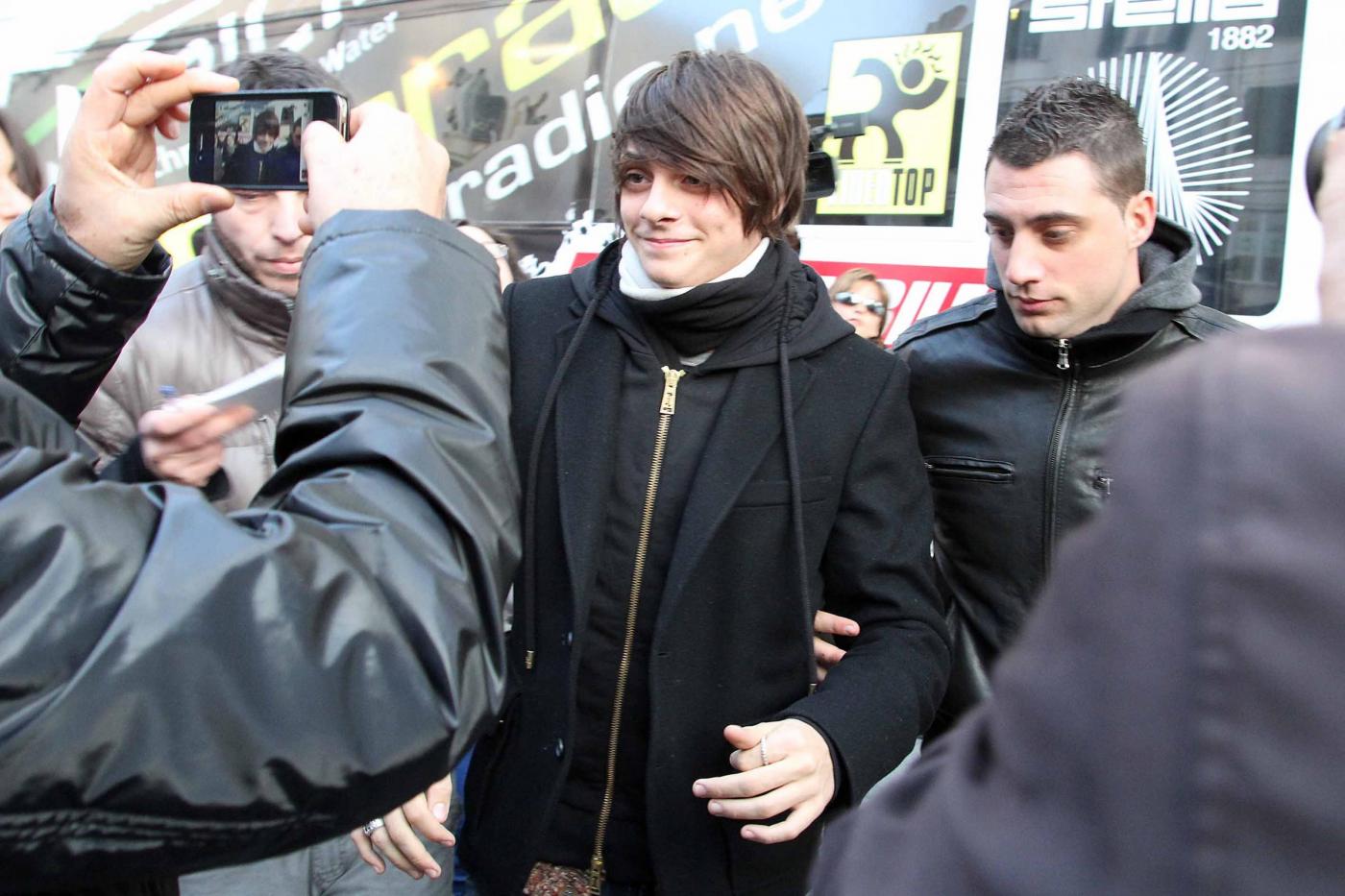 ©Claudio Bernardi/Lapresse Sanremo, 14 febbraio 2012 Il quindicenne Alessandro Casillo, proveniente dalla trasmissione "Io canto" di cui ha fatto parte per due edizioni, idolo delle teenager, assediato dalle fans fuori dal teatro Ariston. Gareggia nella categoria giovani.