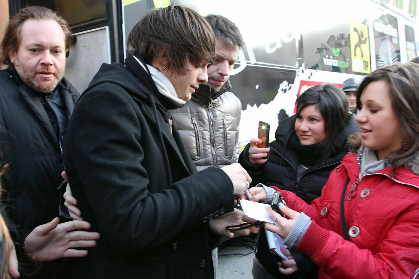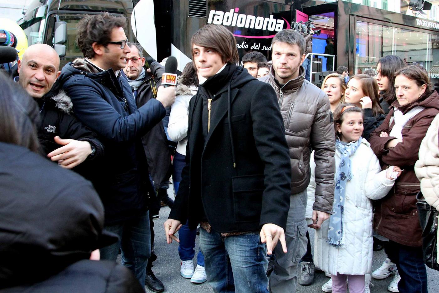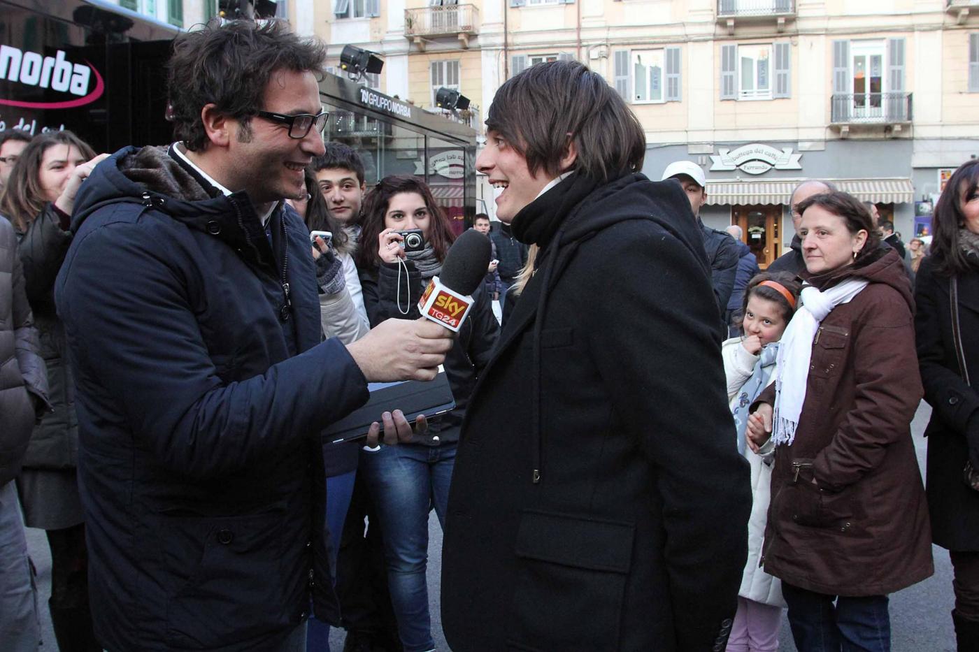 ©Claudio Bernardi/Lapresse Sanremo, 14 febbraio 2012 Il quindicenne Alessandro Casillo, proveniente dalla trasmissione "Io canto" di cui ha fatto parte per due edizioni, idolo delle teenager, assediato dalle fans fuori dal teatro Ariston. Gareggia nella categoria giovani.
