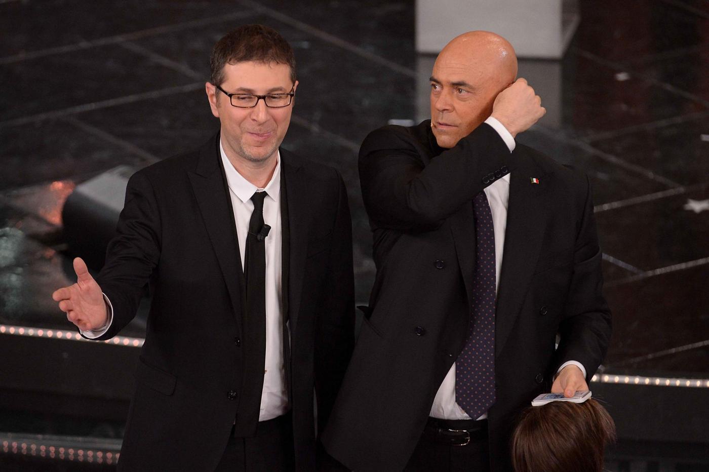 Foto Fabio Ferrari/LaPresse12-02-2013 Sanremo IM - ItaliaspettacoloTeatro Ariston63esimo Festival della canzone italiana - Prima seratanella foto: Fabio Fazio, Maurizio CrozzaPhoto Fabio Ferrari/LaPresse12-02-2013 Sanremo IM - ItalyentertainmentAriston Theatre63th Festival of italian song - First eveningIn the photo: Fabio Fazio, Maurizio Crozza
