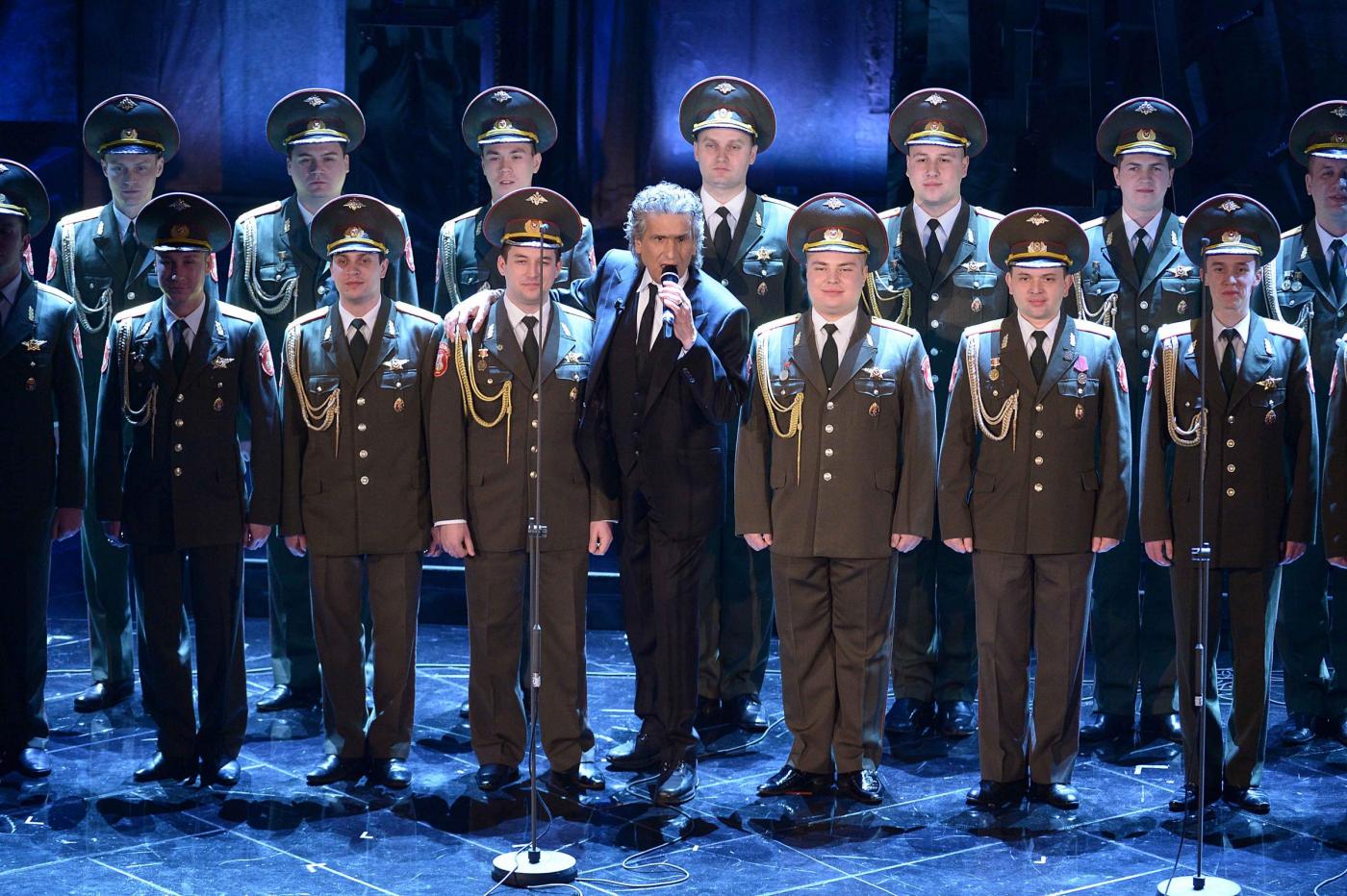 Foto Fabio Ferrari/LaPresse12-02-2013 Sanremo IM - ItaliaspettacoloTeatro Ariston63esimo Festival della canzone italiana - Prima seratanella foto: Toto Cutugno ed il Coro dell'Armata RossaPhoto Fabio Ferrari/LaPresse12-02-2013 Sanremo IM - ItalyentertainmentAriston Theatre63th Festival of italian song - First eveningIn the photo: Toto Cutugno, Coro dell'Armata Rossa