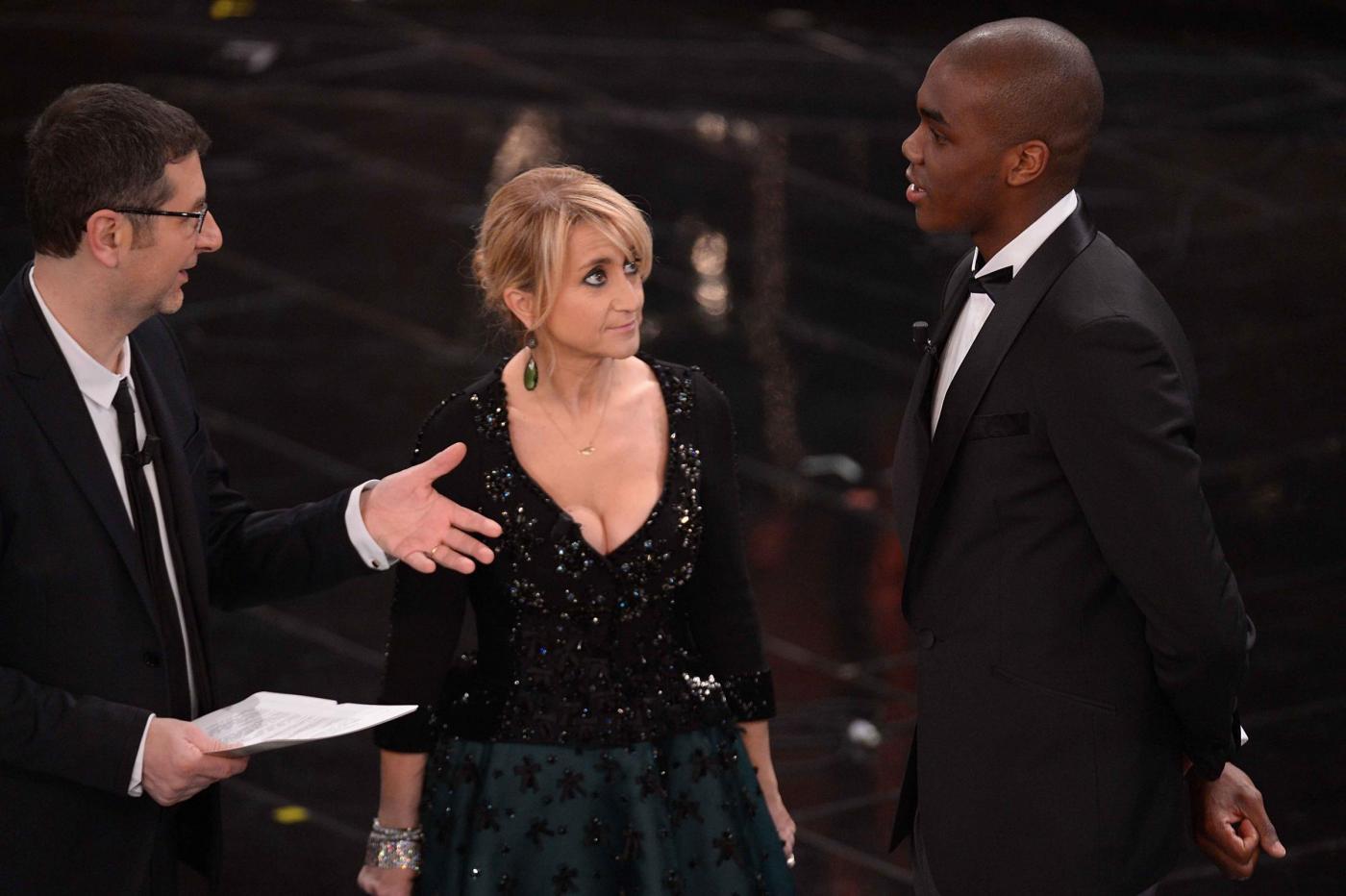 Foto Fabio Ferrari/LaPresse12-02-2013 Sanremo IM - ItaliaspettacoloTeatro Ariston63esimo Festival della canzone italiana - Prima seratanella foto: Angelo Ogbonna, Luciana Littizzetto, Fabio FazioPhoto Fabio Ferrari/LaPresse12-02-2013 Sanremo IM - ItalyentertainmentAriston Theatre63th Festival of italian song - First eveningIn the photo: Angelo Ogbonna, Luciana Littizzetto, Fabio Fazio