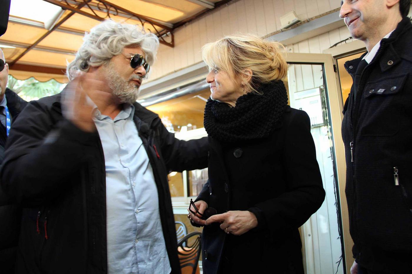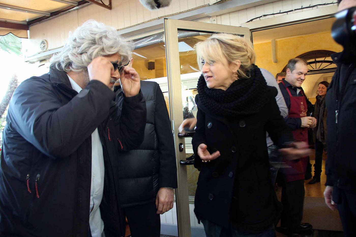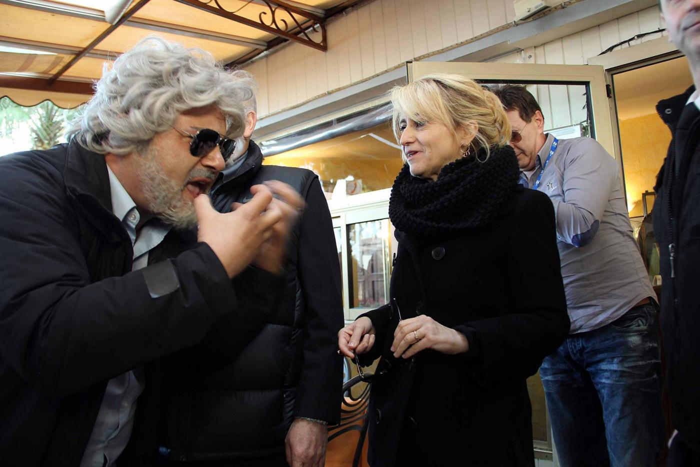 Foto Claudio Bernardi/LaPresse 20-02-2014, Sanremo - Italia Gossip Luciana Littizzetto, a pranzo con la scorta, incontra il finto Beppe Grillo: "Che fortuna, questo finto almeno non sputa!".Nella foto: Luciana Littizzetto