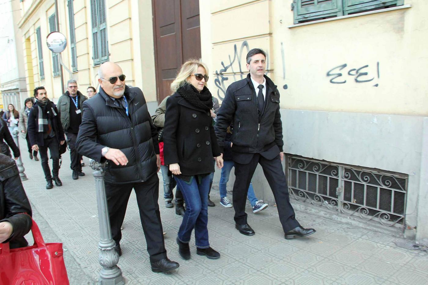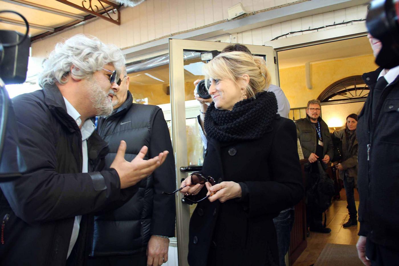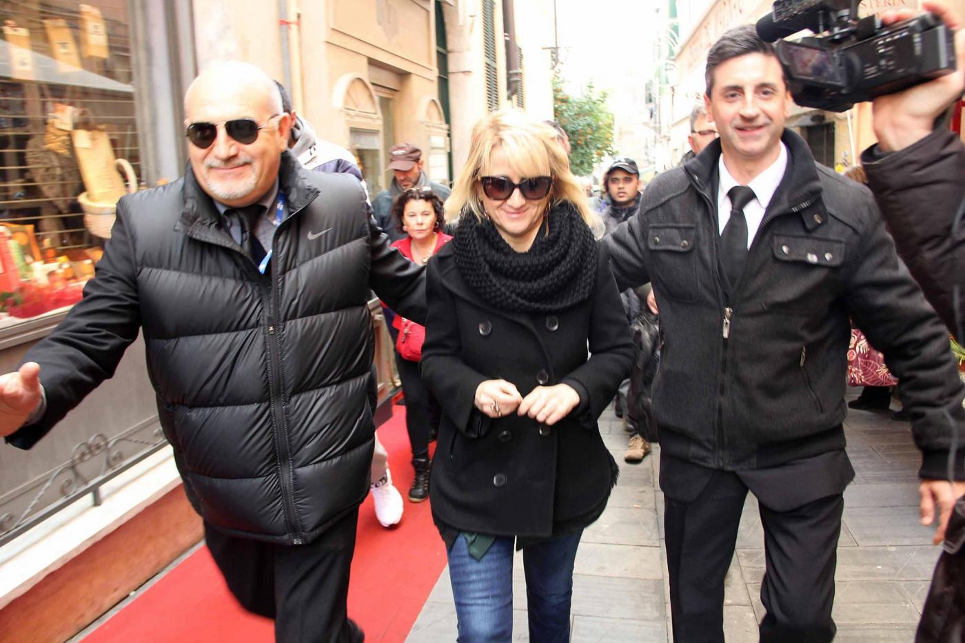 Foto Claudio Bernardi/LaPresse 20-02-2014, Sanremo - Italia Gossip Luciana Littizzetto, a pranzo con la scorta, incontra il finto Beppe Grillo: "Che fortuna, questo finto almeno non sputa!".Nella foto: Luciana Littizzetto