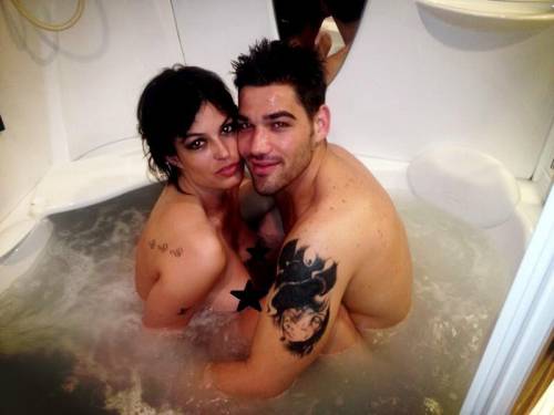 Una foto di Sara Tommasi insieme a Nando Colelli accompagnata dalla scritta "Un bel bagno rilassante..."Una foto di Sara Tommasi insieme a Nando Colelli accompagnata dalla scritta "Un bel bagno rilassante..."