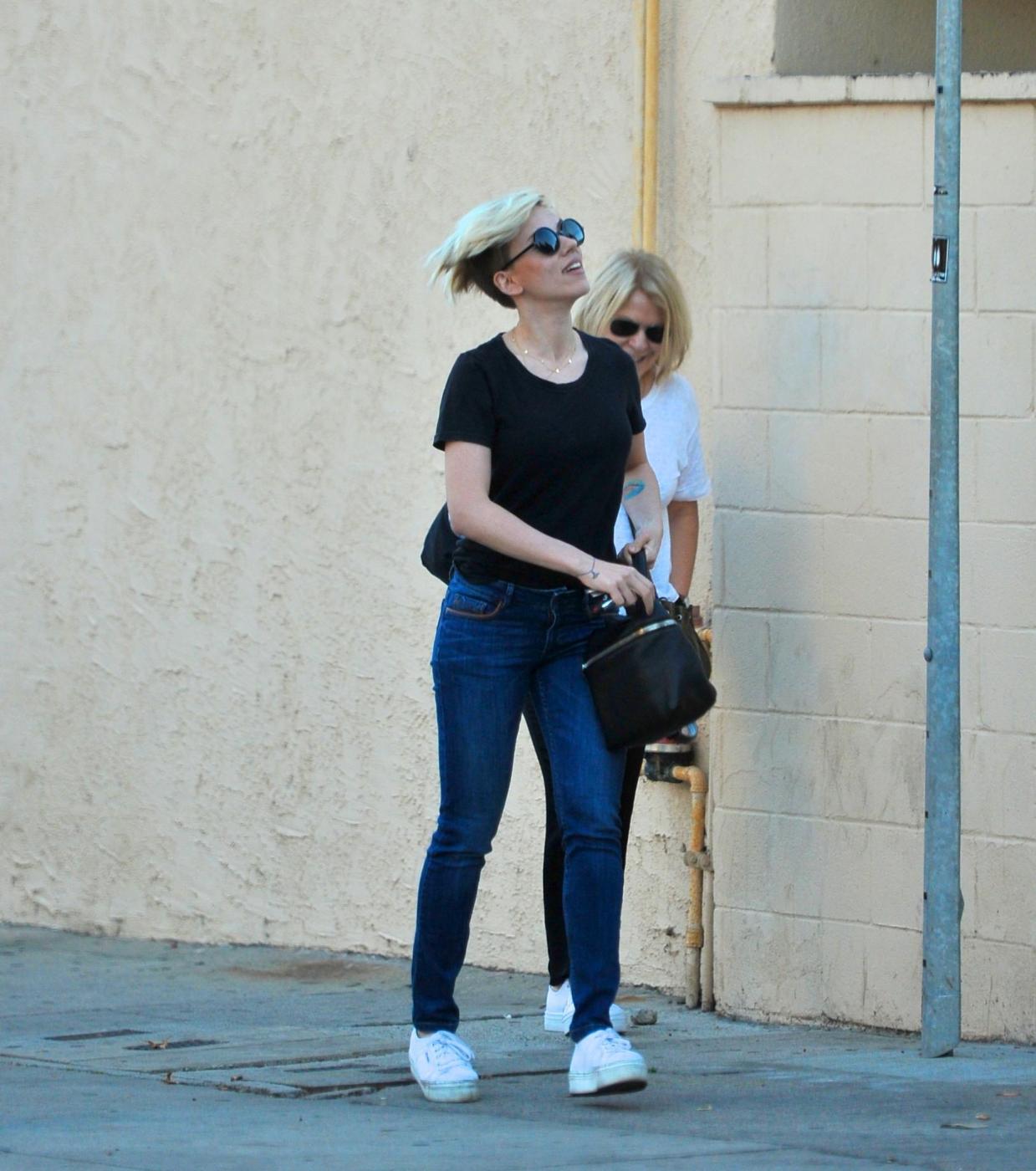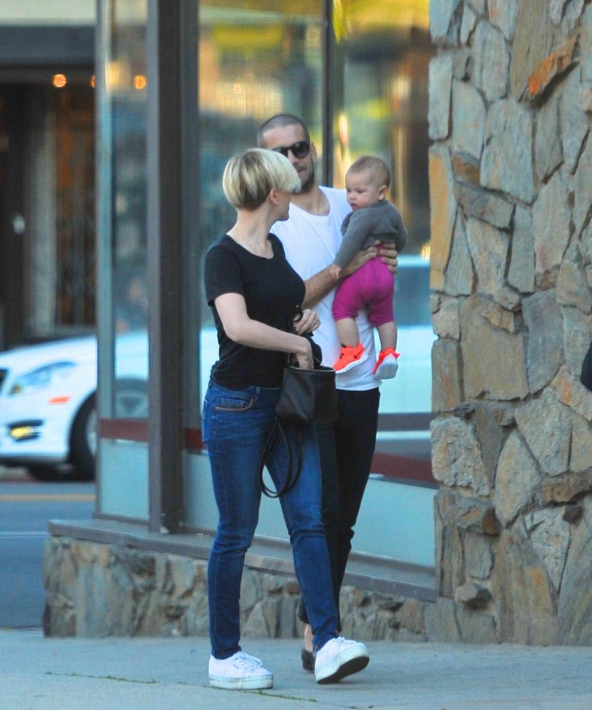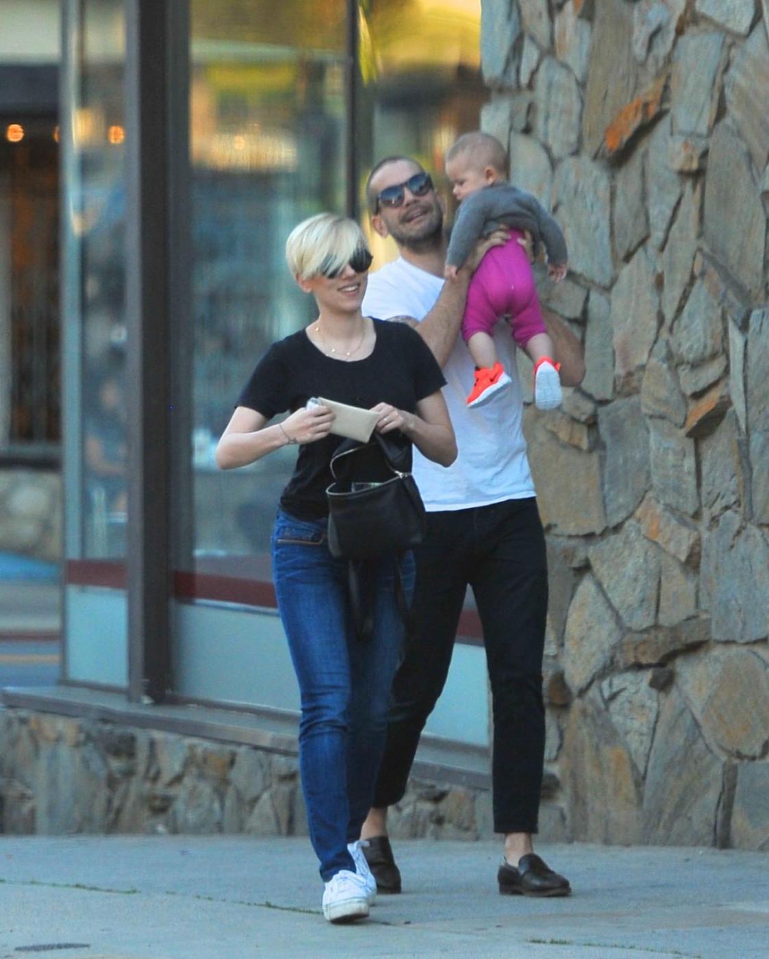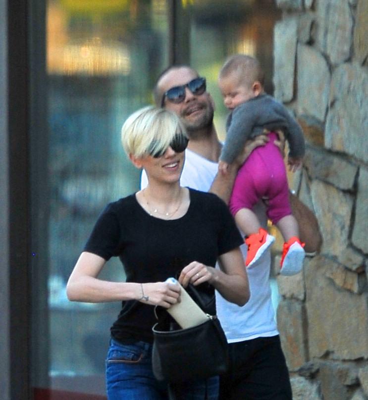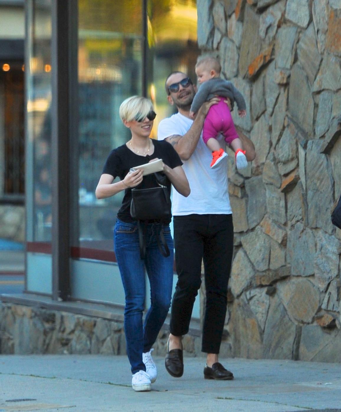 SANTA MONICA( CALIFORNIA) – San Valentino in famiglia per Scarlett Johansson. La bella attrice, occhiali e capelli corti, appare irriconoscibile in alcune immagini scattate sabato 14 febbraio a Santa Monica in California mentre passeggia con il marito Romain Dauriac e la loro figlia nata a settembre Rose Dorothy, per andare al ristorante Mexico City.