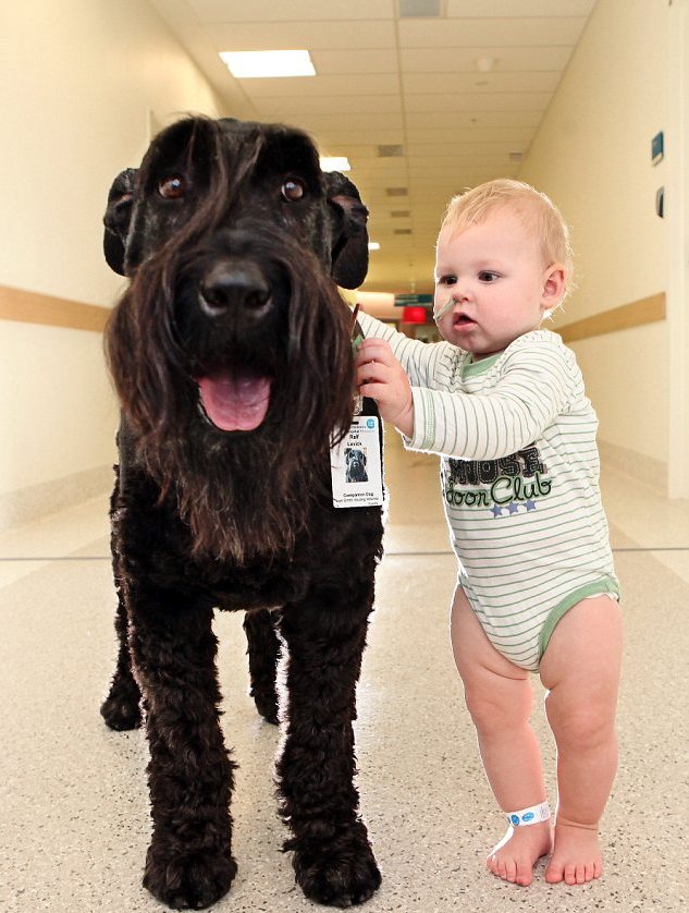 Claire e Zeke sono solo alcuni dei tanti bambini che grazie a questo cane che regolarmente fa il giro nell’ospedale pediatrico, riescono ad alzarsi dal letto trovando una valida distrazione al loro male.