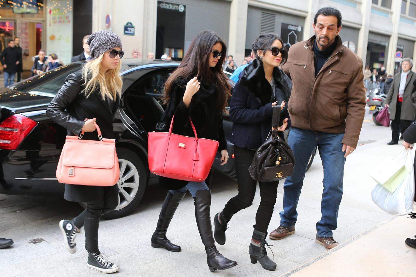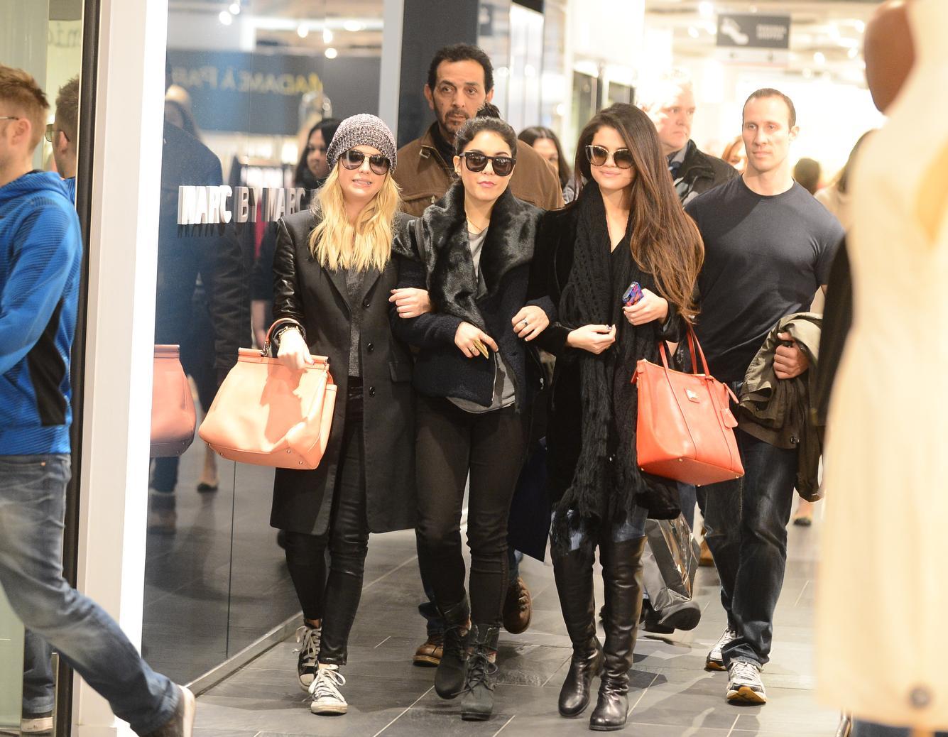 LaPresseSpring Breakers cast menbers Selena Gomez, Ashley Benson and Vanessa Hudgens are spotted shopping at Printemps store and dinning at 'L'Avenue' Restaurant in Paris, France on February 16, 2013.