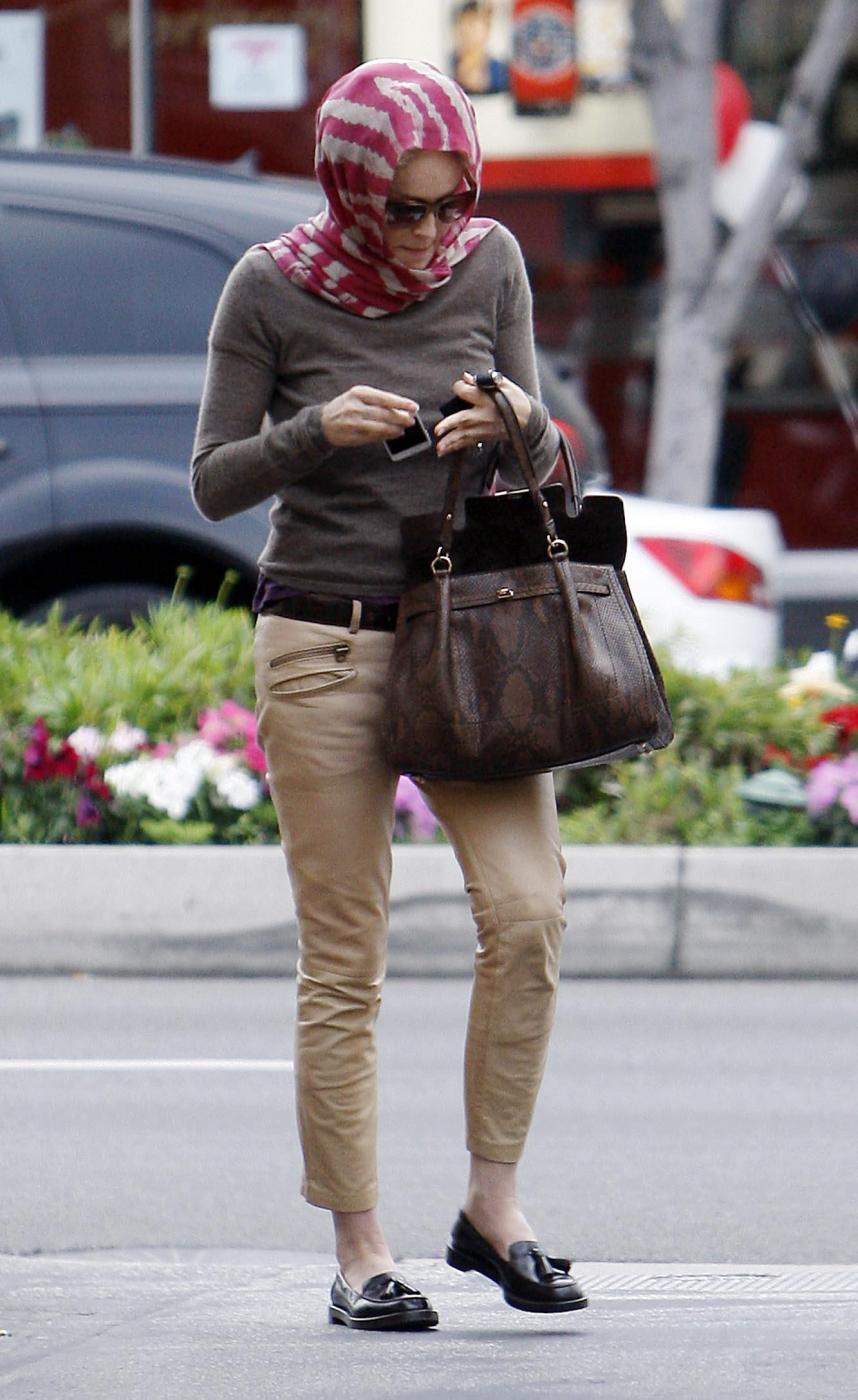 Sharon in questi giorni è impegnata sul set del film Attachment: con questo look è apparsa in strada a Beverly Hills (foto Ap/LaPresse)