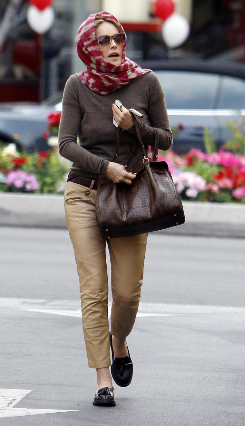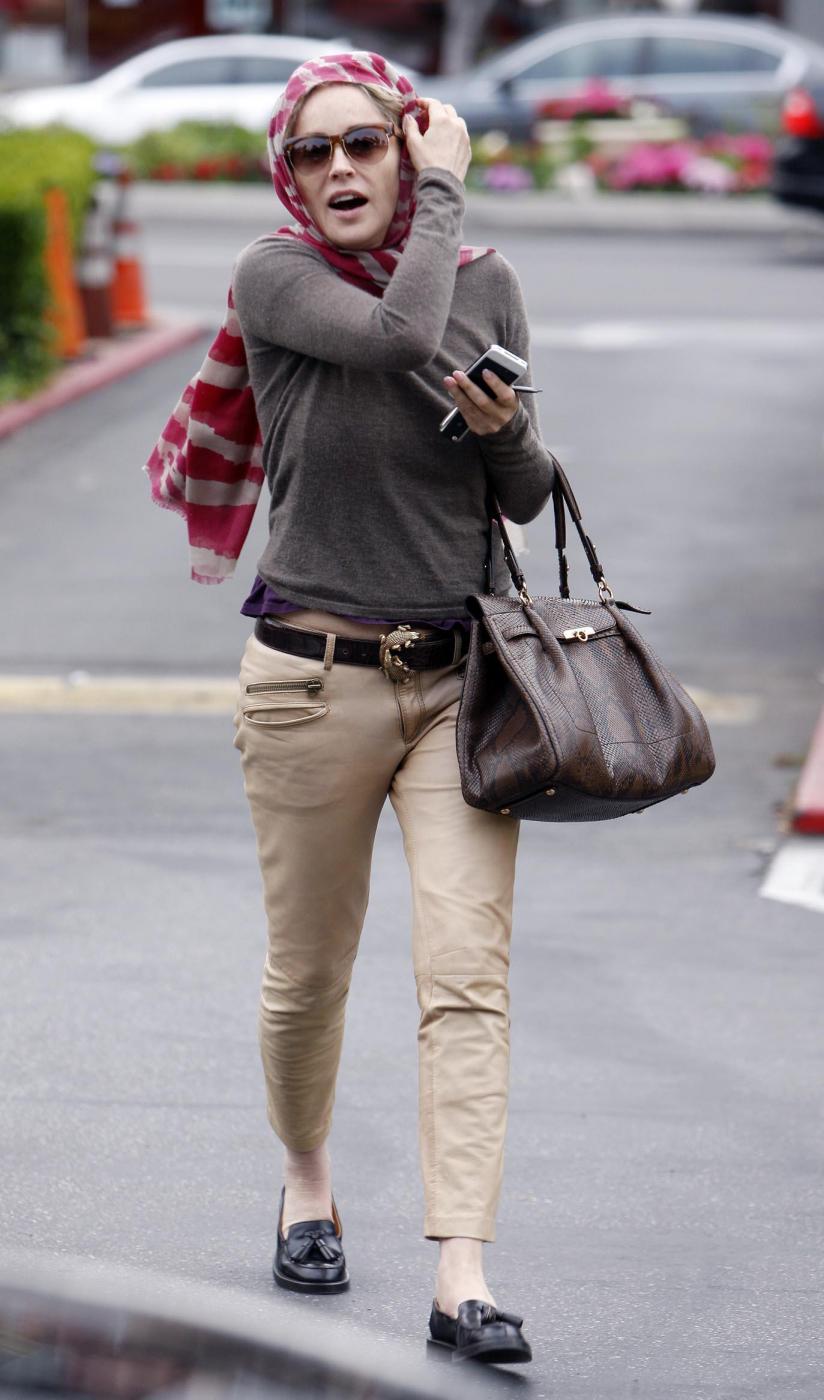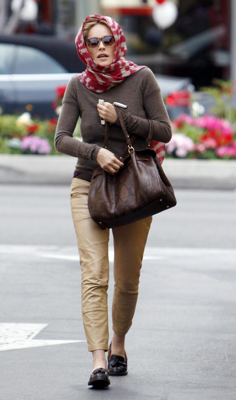 LOS ANGELES – Il look improvvisato di Sharon Stone piace alla Rete. Sono in tanti infatti a fare un paragone tra lei e un’ icona di stile come Grace Kelly, probabilmente per i suoi pantaloni a sigaretta, i mocassini, gli occhiali neri e soprattutto per il foulard annodato nei capelli.