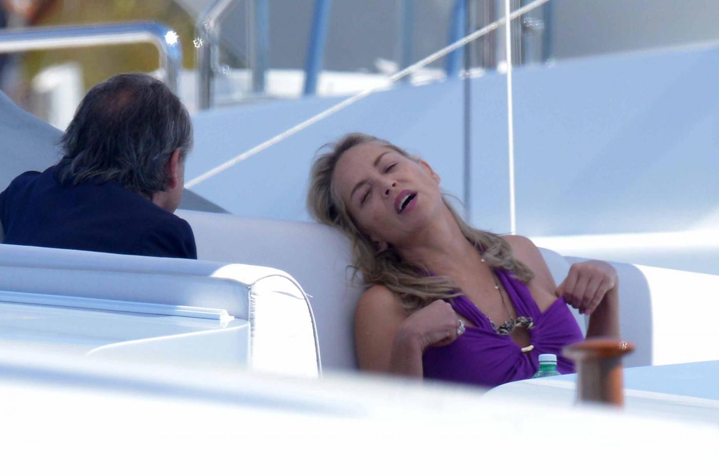 Questa volta, la bella attrice non più giovanissima, indossa un abito viola e viene pizzicata mentre sonnecchia al sole della Costa Azzurra (foto LaPresse)