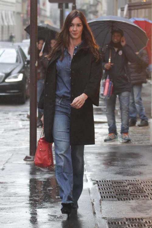 Uscita dal negozio, la presentatrice cammina senza ombrello incurante della pioggia (foto LaPresse)