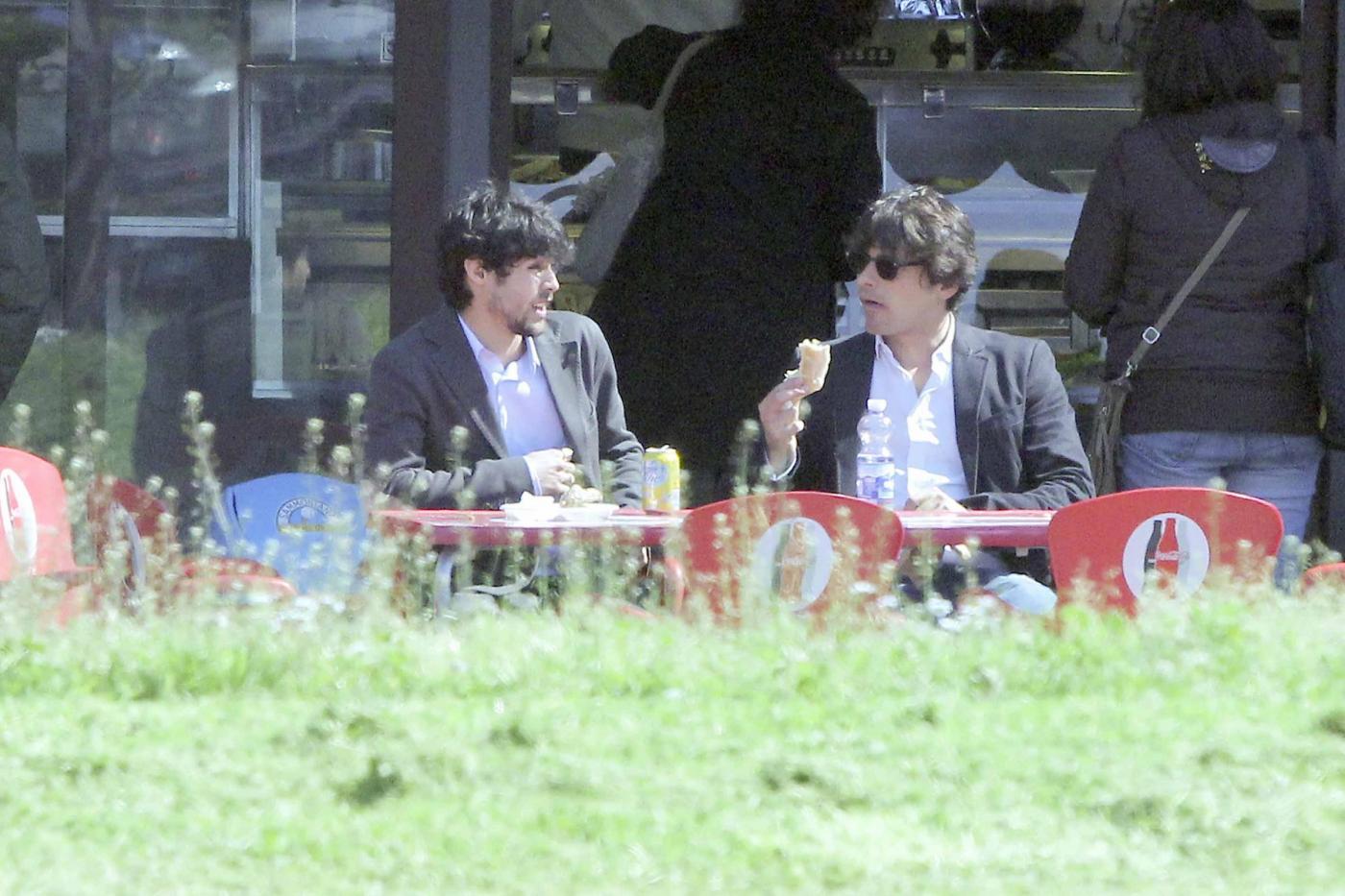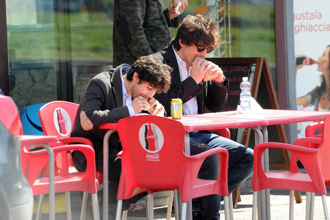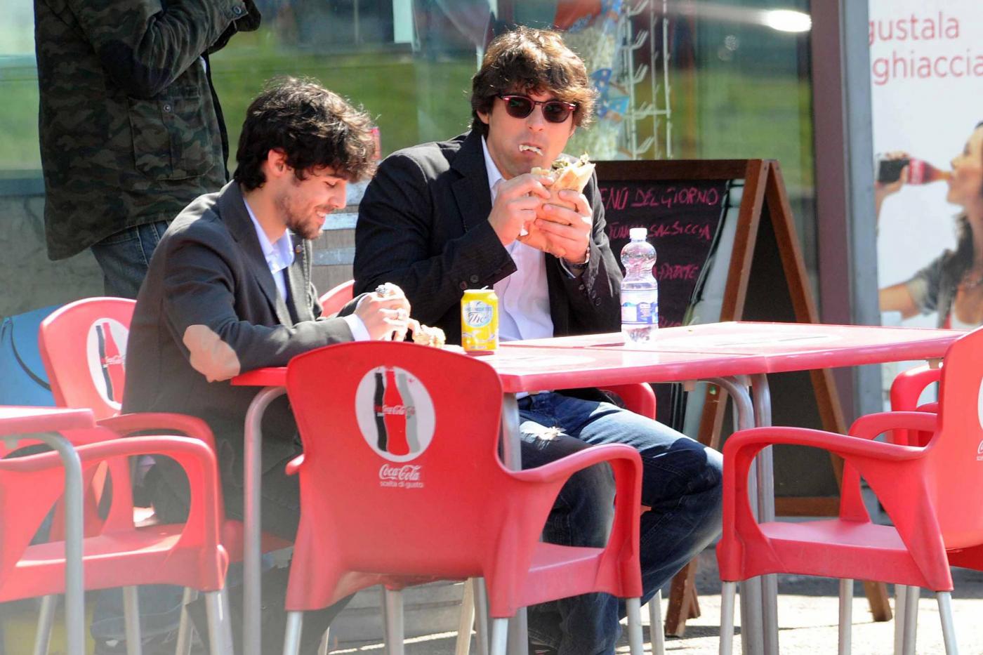 Foto Claudio Bernardi/LaPresse Roma, 03 aprile 2013gossip L'attore di "Distretto di Polizia", Simone Corrente e l'attore spagnolo Pablo Espinosa, entrambi concorrenti del nuovo show di Milly Carlucci "Altrimenti ci arrabbiamo", pranzano insieme divorando un panino dietro l'altro.