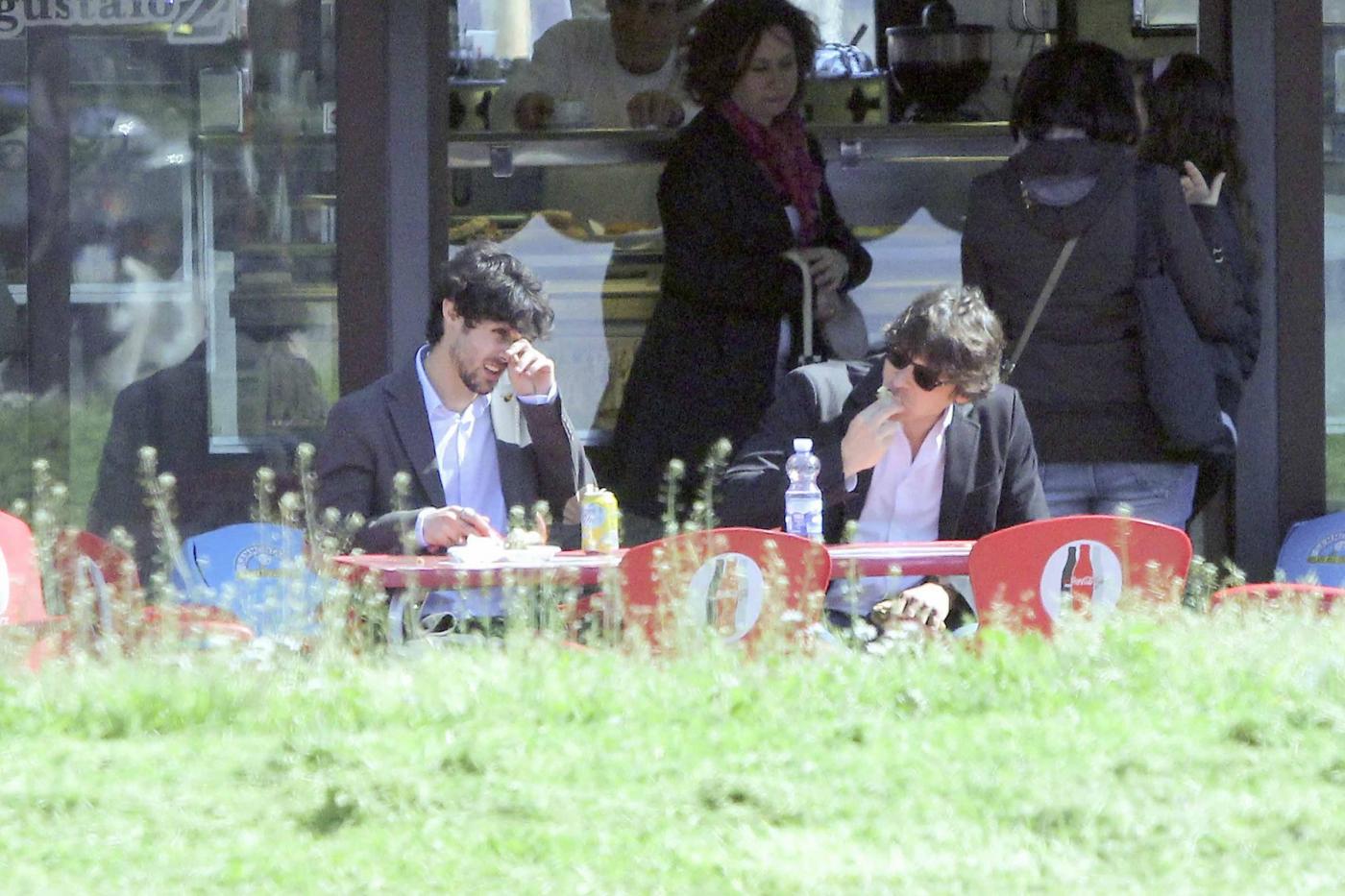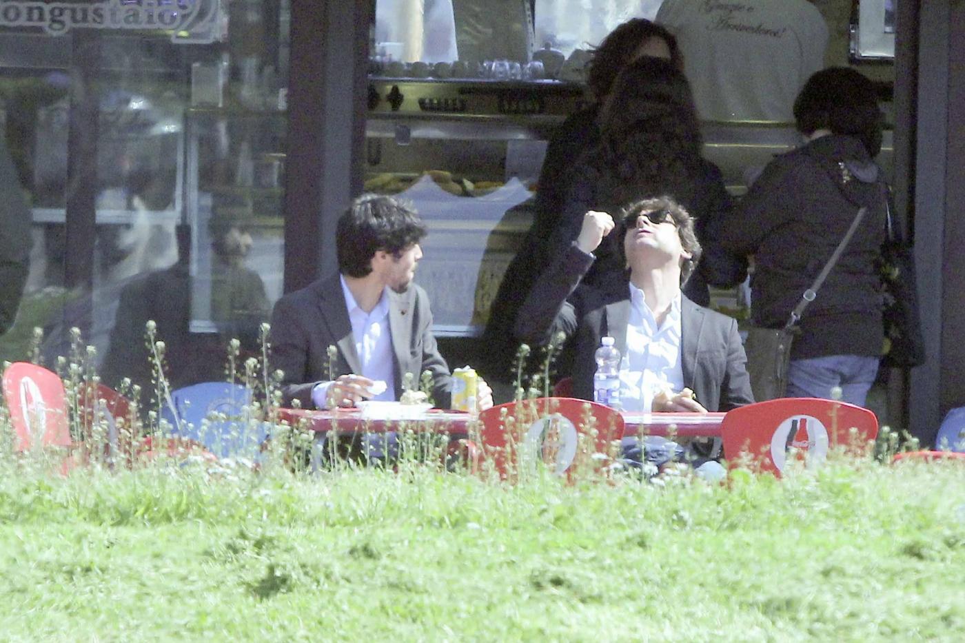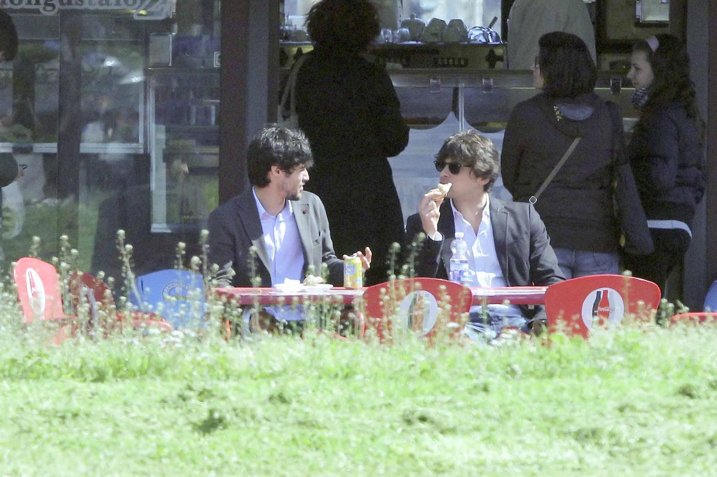 Foto Claudio Bernardi/LaPresse Roma, 03 aprile 2013gossip L'attore di "Distretto di Polizia", Simone Corrente e l'attore spagnolo Pablo Espinosa, entrambi concorrenti del nuovo show di Milly Carlucci "Altrimenti ci arrabbiamo", pranzano insieme divorando un panino dietro l'altro.