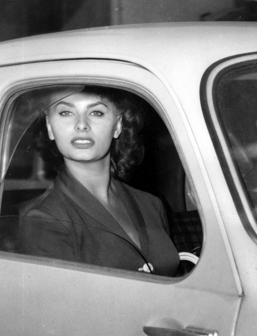 Archivio Lapresse/Publifoto8-07-1955 Roma ItaliaSpettacolo CinemaSophia Loren in auto