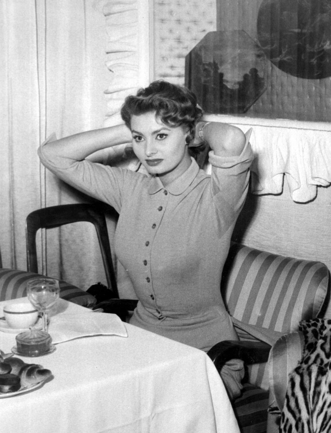 Archivio Lapresse/Publifoto22-12-1954 Milano ItaliaSpettacolo CinemaSophia Loren a colazione in un albergo