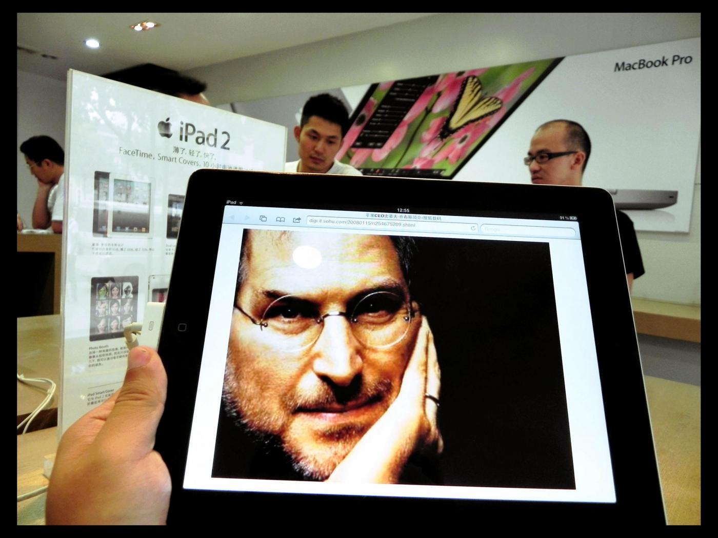 HANGZHOU, Aug. 25, 2011 An ipad displays a picture of Steve Jobs at an Apple store in Hangzhou, east China's Zhejiang Province, Aug. 25, 2011. Steve Jobs has resigned as the chief executive officer (CEO) of Apple, the company said on Wednesday. (Credit Image: 婠Long Wei/Xinhua/ZUMAPRESS.com)