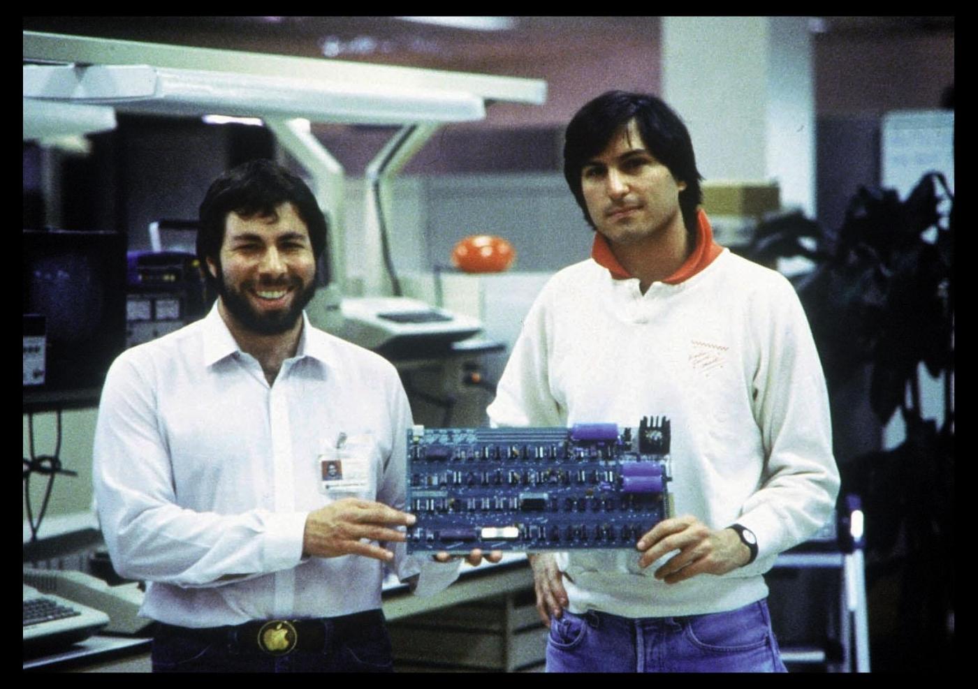 Apple Computer wurde 1976 von Steve Jobs (rechts), Steve Wozniak (links) und Ronald Wayne (nicht im Bild) in der Garage von Jobs Eltern in Mountain View (Kalifornien) gegr(Archivfoto aus dem Jahr 1978). Foto: Apple +++(c) dpa - Report+++