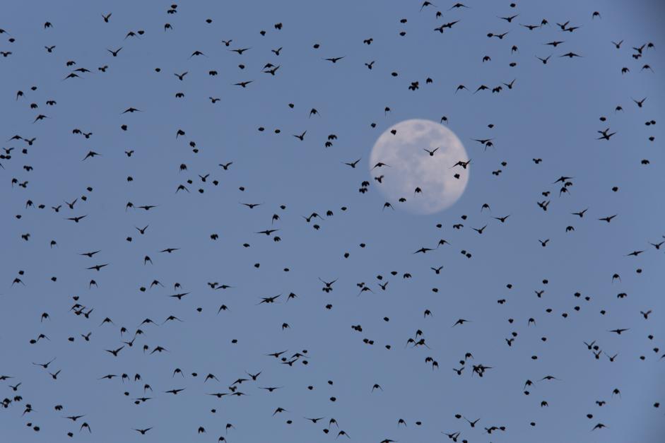 A flock of migrating starlings flies over the southern Israeli village of Tidhar, Wednesday, Feb. 12, 2014. (AP Photo/Oded Balilty)