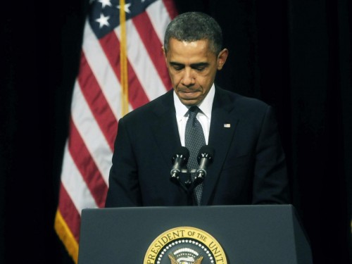 Il presidente americano, Barack Obama, fa l’elenco delle vittime della strage della Sandy Hook Elementary School e si commuove, interrompendosi mentre pronuncia i nomi.